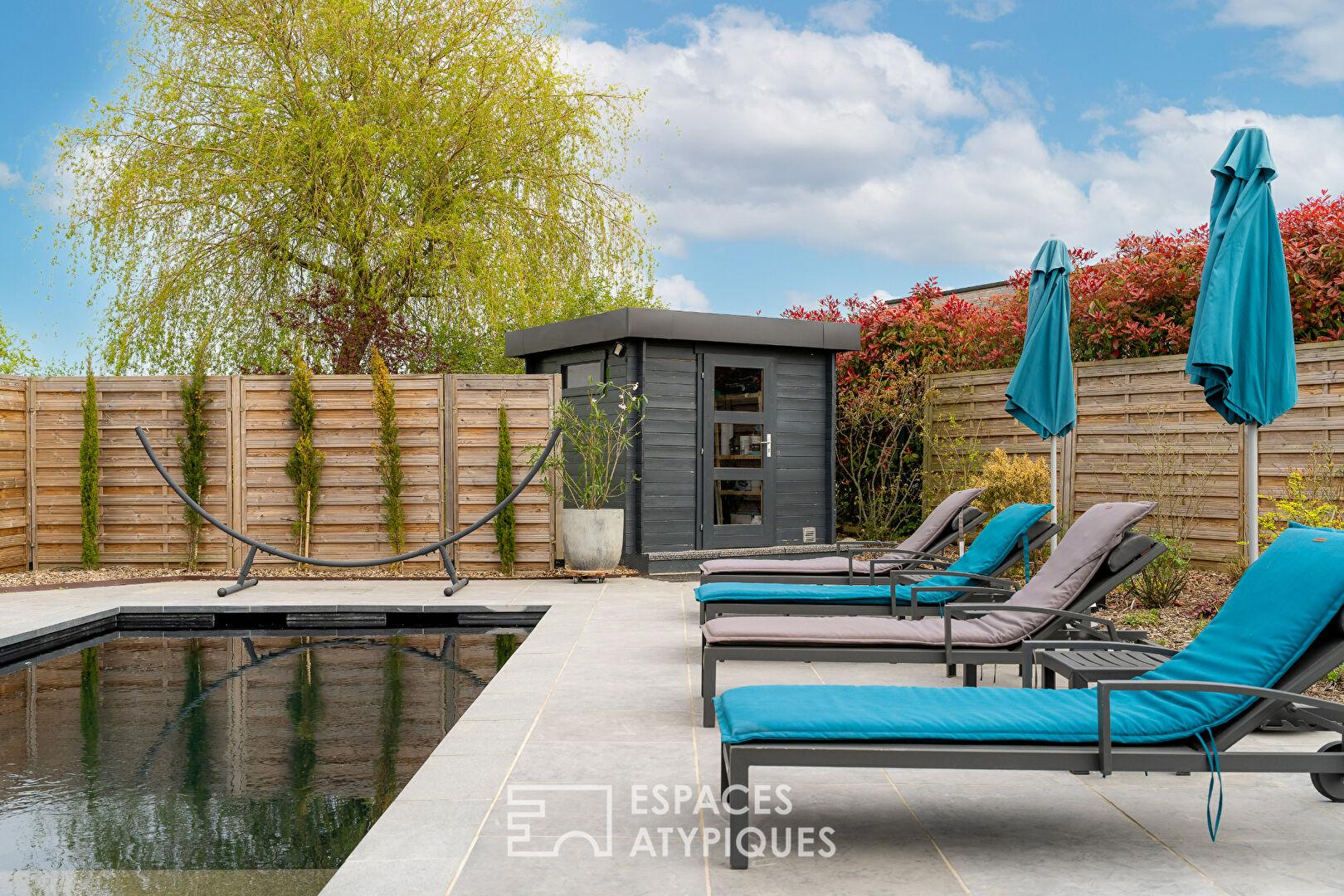 Le jardin clos, véritable écrin de verdure orienté plein sud, invite à la détente avec son spa semi-enterré et sa piscine bordée par une terrasse entièrement rénovée. Le garage motorisé pour deux véhicules et la performance énergétique classée en DPE B soulignent la qualité de l’entretien de ce bien haut de gamme.