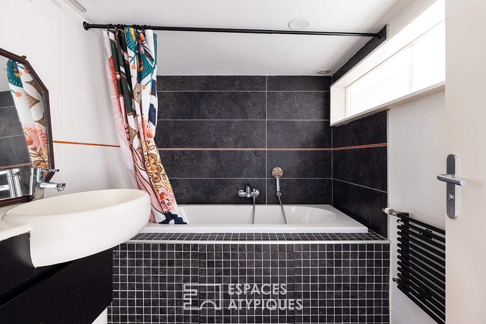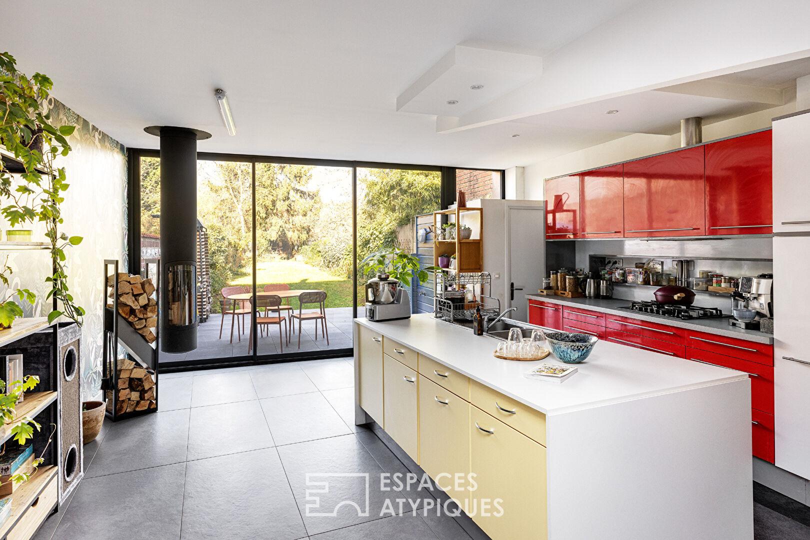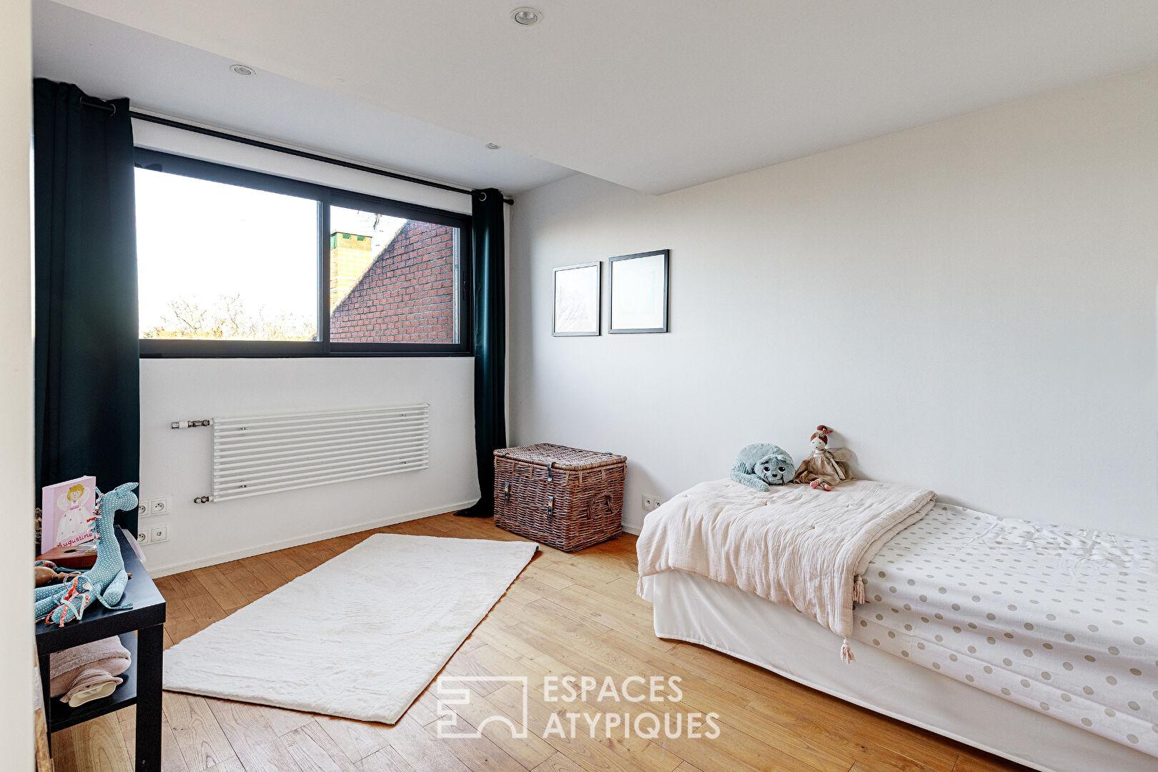 Située dans le quartier Saint Rictrude à Ronchin, cette ancienne pharmacie de 165 m² a été entièrement réinventée en maison d’architecte singulière. Dès l’entrée, les volumes révèlent un habitat spacieux où la lumière circule librement, s’ouvrant sur un jardin verdoyant et une terrasse intime.