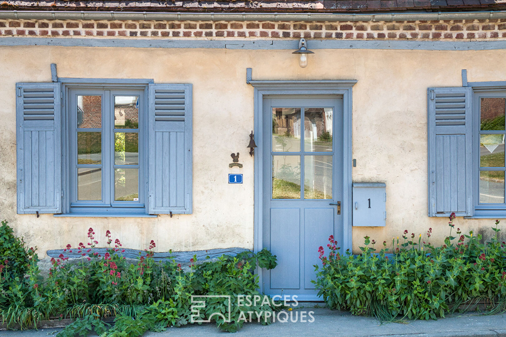 Cette authentique maison de village à proximité de Ressons sur Matz de 1832 en torchis et bois avec pignon en pierre et petite tuile a fait l’objet d’une extension contemporaine à ossature bois à toit plat.