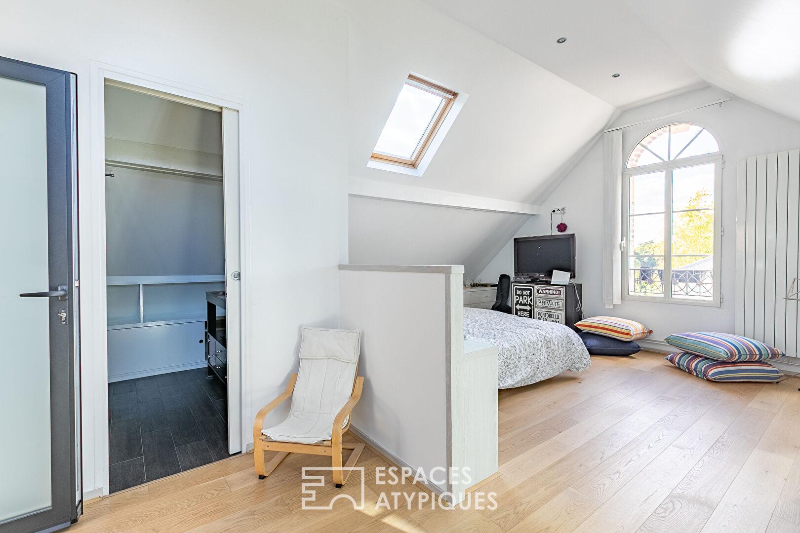 Au calme et ensoleillée, la distribution est ici rationnelle et fluide avec un bel et lumineux escalier central avec toit verrière.