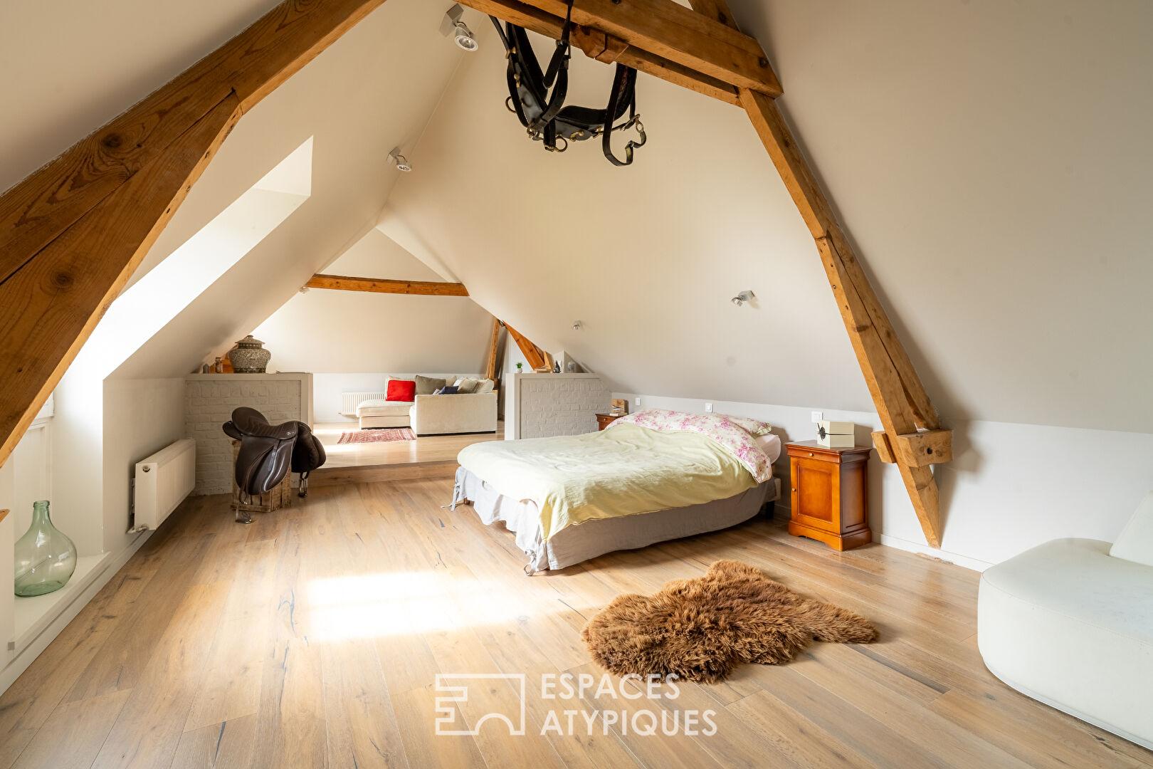 Ce corps de ferme, véritable pépite de l’immobilier de prestige dans le Nord, séduit par ses volumes magistraux et son caractère préservé.