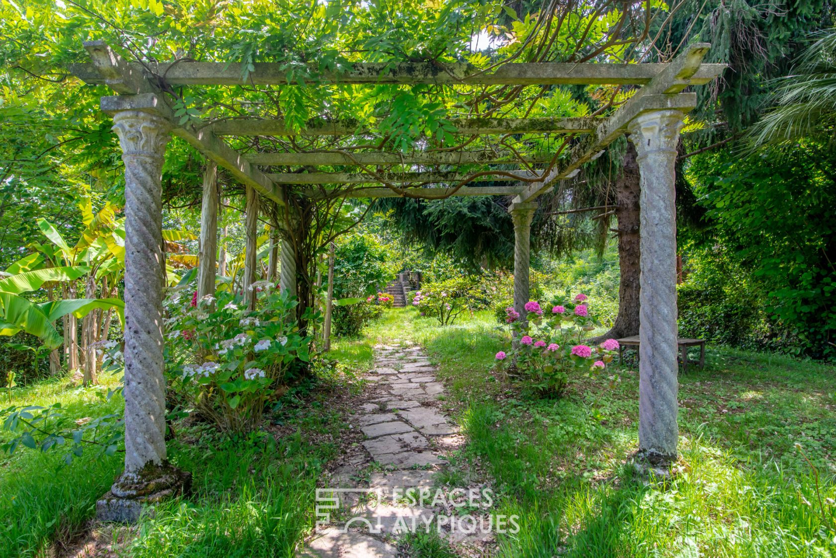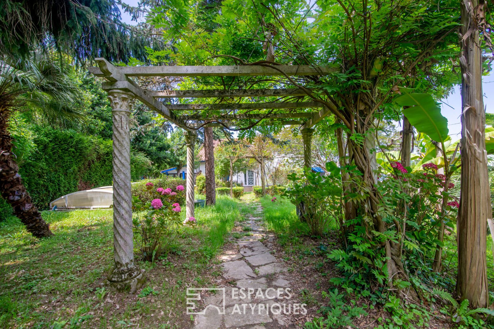 Un sous-sol de 39m² servant de stockage complète l’ensemble. Une piscine enclavée dans un écrin de verdure protégé par son dôme donnant accès à un jardin luxuriant et une vue contemplative sur l’Adour.