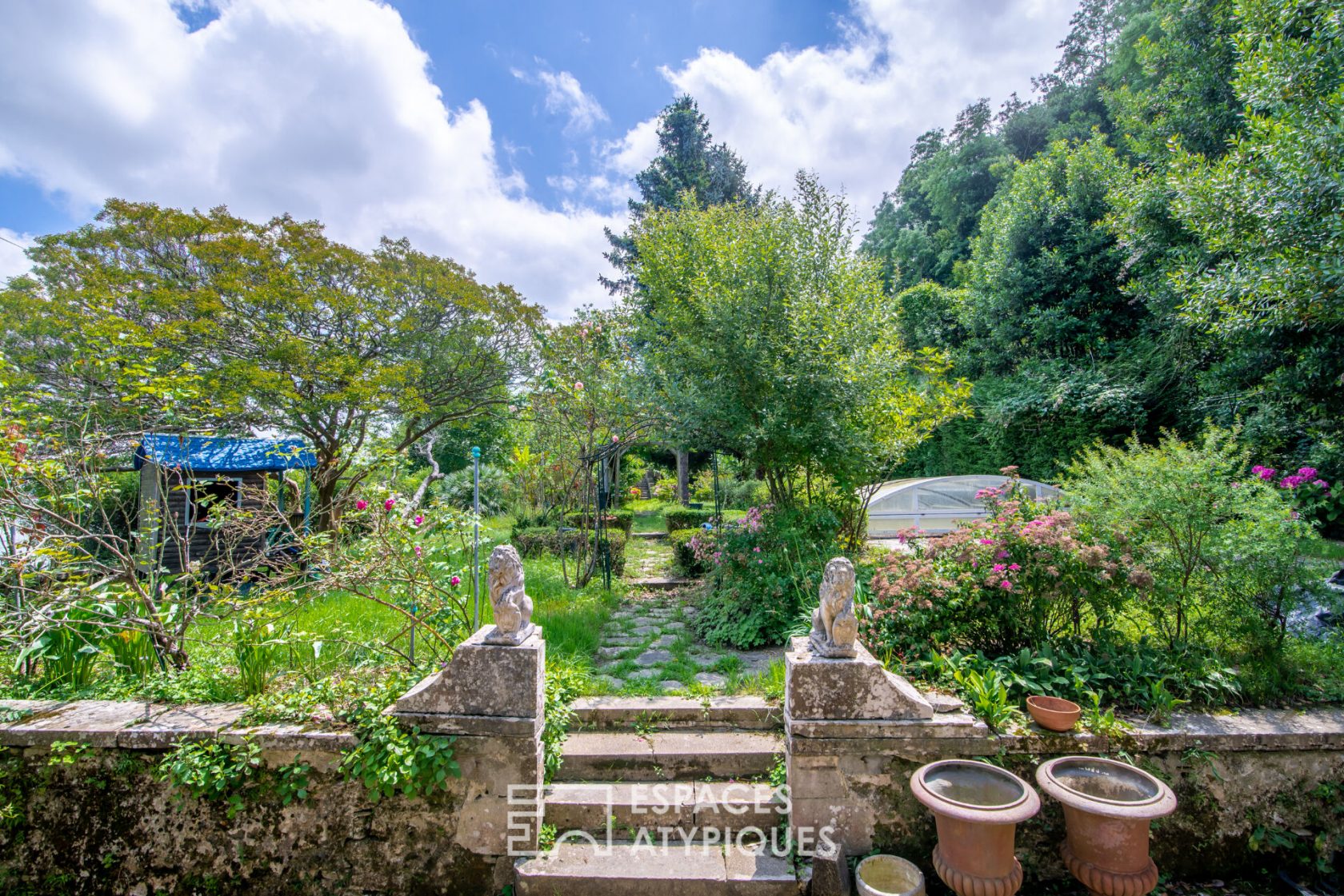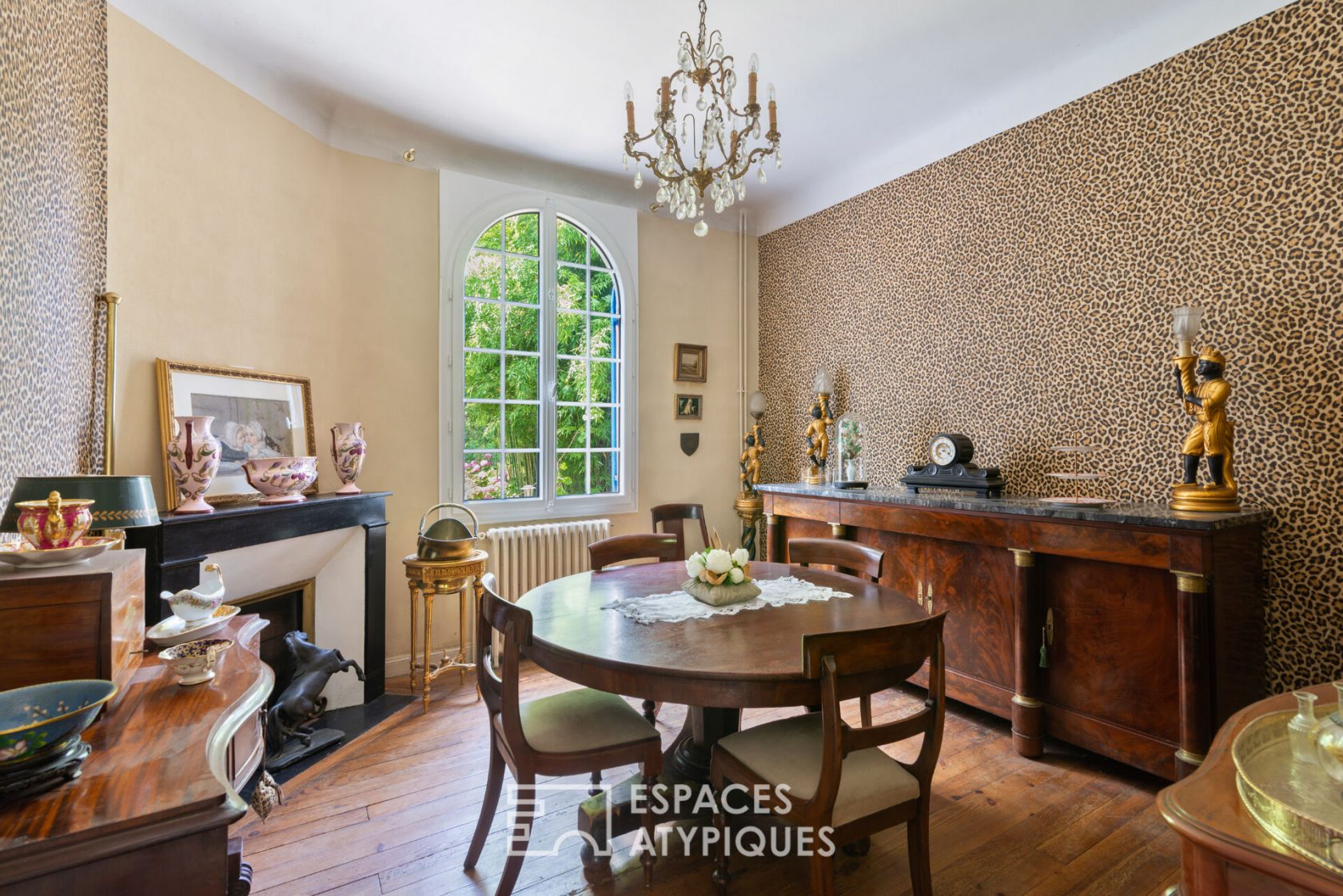 L’entrée distribue d’un côté, le séjour de 36m² avec sa magnifique vue sur l’Adour et de l’autre se trouve une salle à manger, une chambre, une salle de bain et une cuisine donnant accès sur l’extérieur verdoyant et une véranda. Au niveau supérieur, deux chambres spacieuses et mansardées, une salle de bain vintage et un WC séparé complètent l’étage.