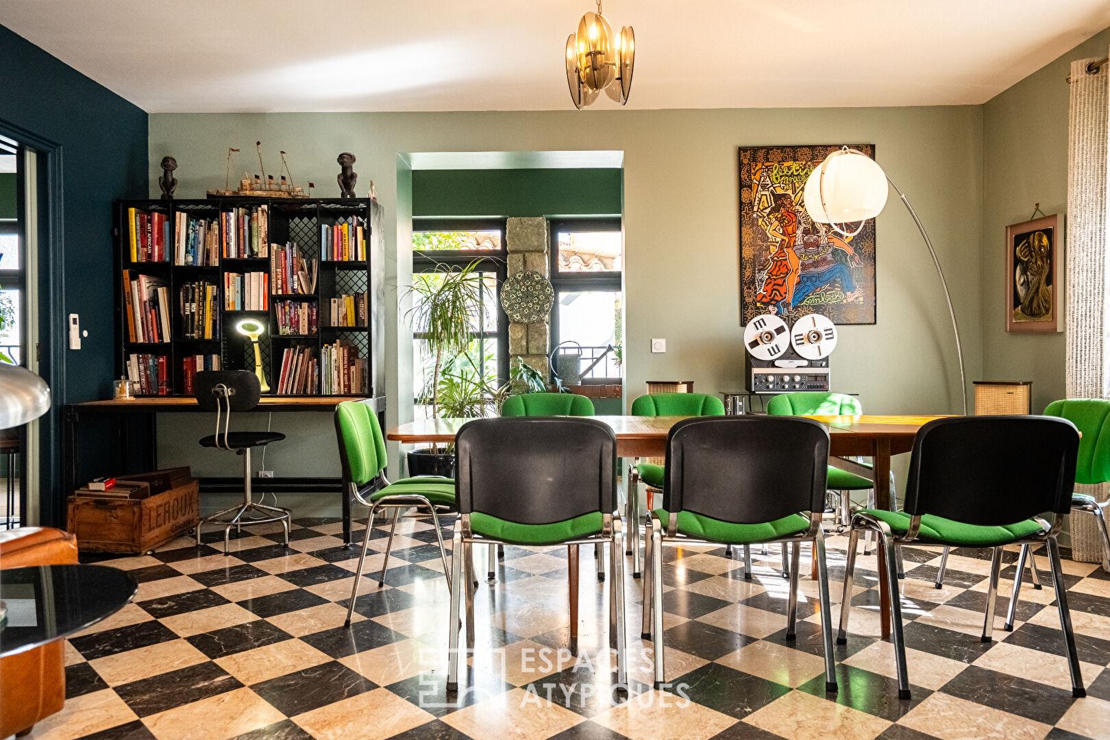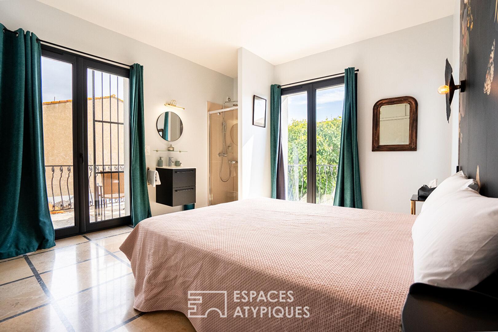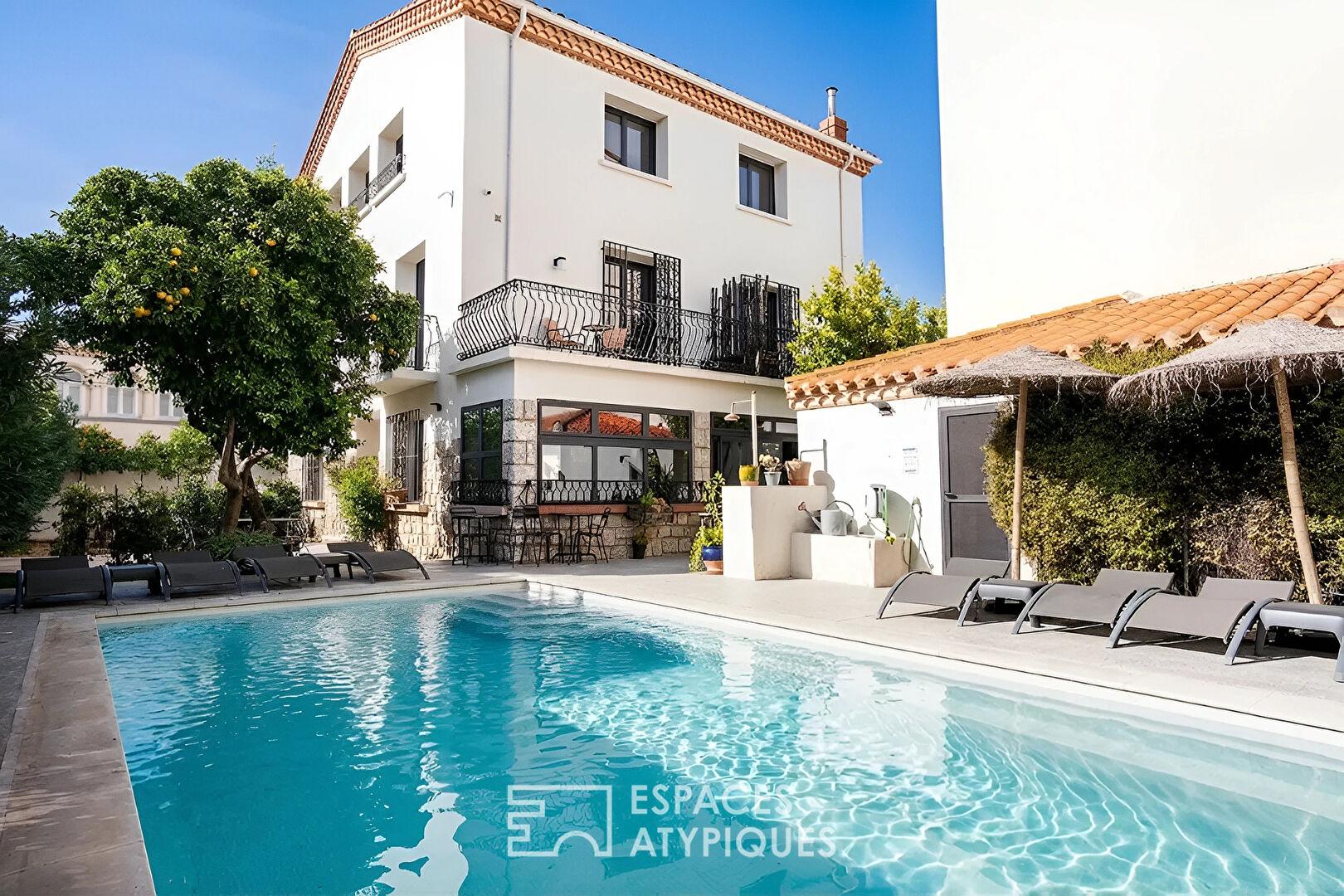 Nichée au coeur d’un joli village proche de Perpignan, cette élégante maison de maître des années 60 développe près de 290 m² habitables et dévoile un art de vivre singulier, entre demeure familiale de caractère et lieu d’accueil déjà en activité.