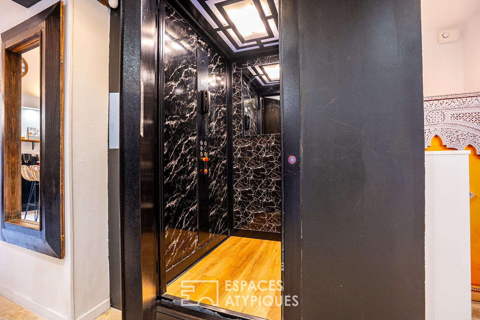 La présence d’un ascenseur privé, d’un bureau et d’un garage souligne le confort moderne de cette demeure aux volumes généreux. L’atmosphère y est sereine, portée par une circulation fluide et une décoration épurée qui met en valeur le caractère historique du lieu.