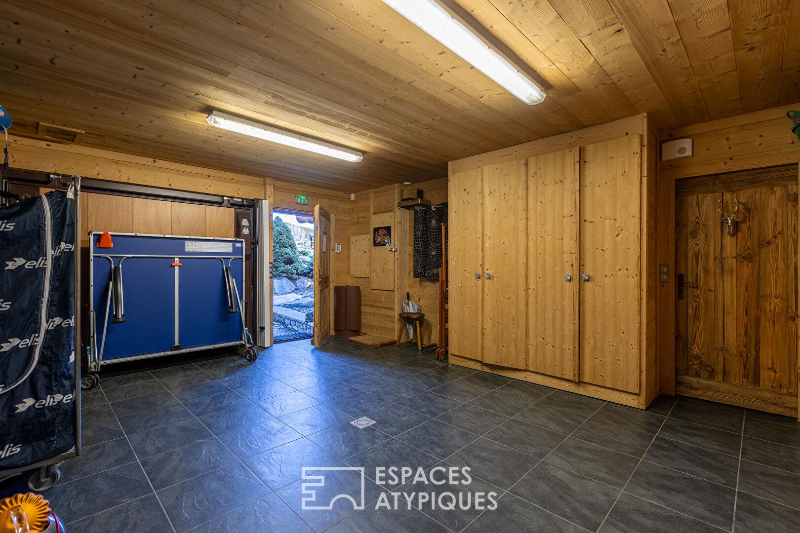 Un grand garage équipé pour le matériel de ski complète ce bien.