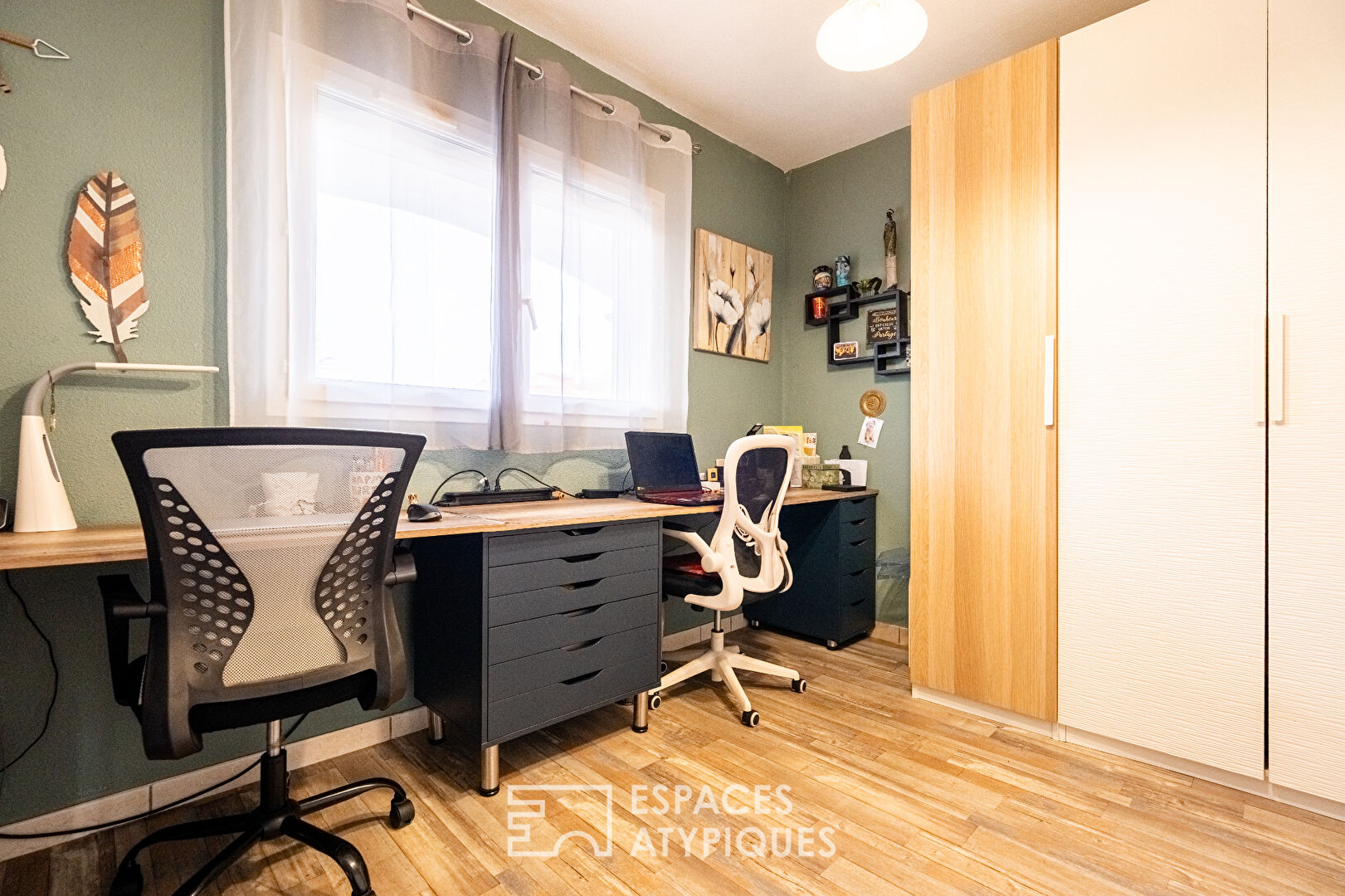 À l’extérieur, le jardin clos et arboré compose un véritable écrin de verdure sans vis-à-vis, propice à la détente. La piscine coque récente s’intègre harmonieusement à l’ensemble, prolongée par une terrasse en teck exposée plein sud. Une partie du terrain reste à aménager selon les envies. Garage avec mezzanine de rangement et stationnements complètent ce bien.