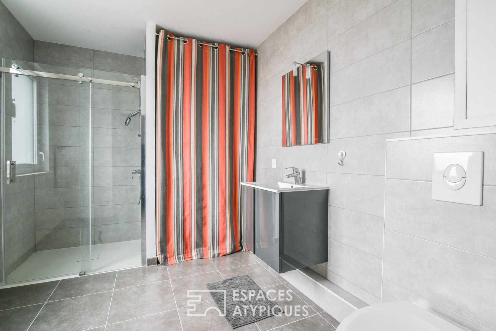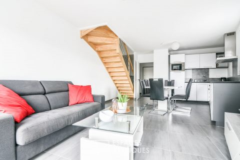 Le second niveau offre quant à lui une salle d’eau et deux chambres. Le confort est également au rendez-vous des prestations de ce duplex avec des matériaux de qualité et notamment un plancher chauffant et rafraîchissant.