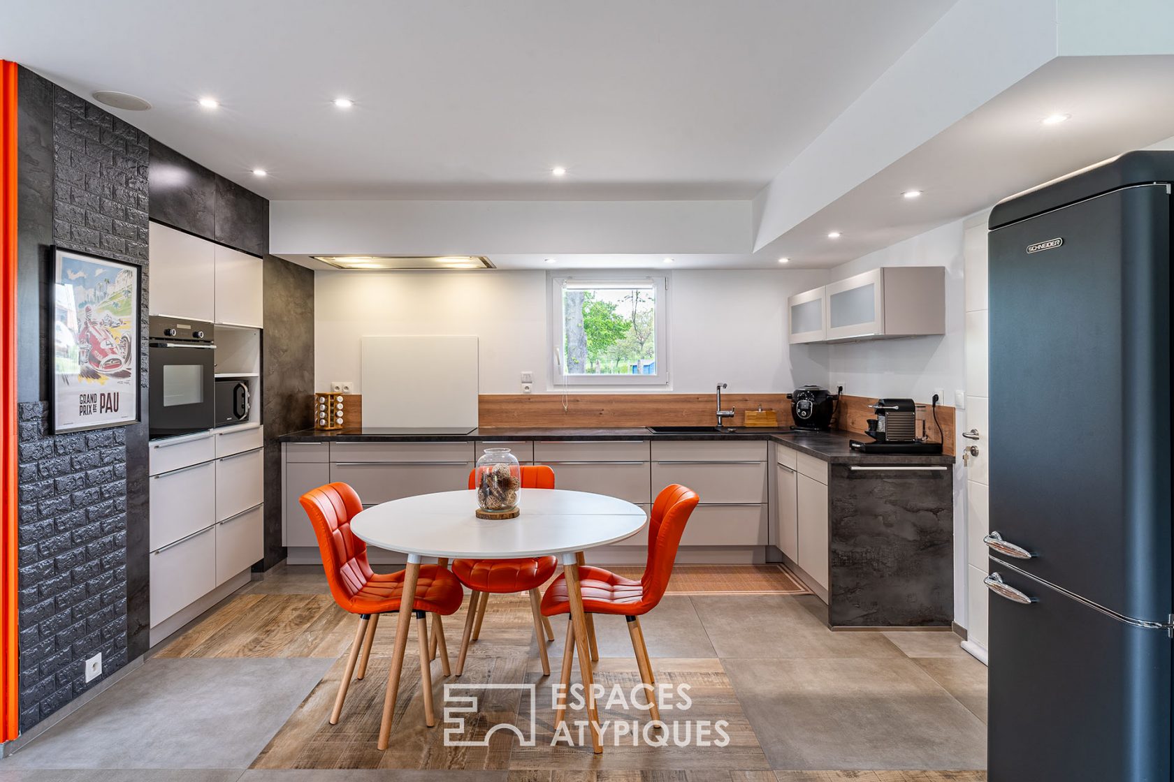 L’entrée s’effectue directement dans la vaste pièce de vie de 50 m² où se côtoient salon, salle à manger et cuisine équipée ouverte. Dotée de nombreuses entrées de lumière grâce aux baies vitrées avec BSO et agrémentée d’un poêle à bois, la pièce principale s’ouvre sur une grande terrasse orientée plein Sud qui se prolonge par un agréable jardin avec potager. Une suite parentale avec dressing et salle d’eau privative, et un accès de plain-pied au garage double avec point d’eau prennent également place au rez-de-chaussée.
