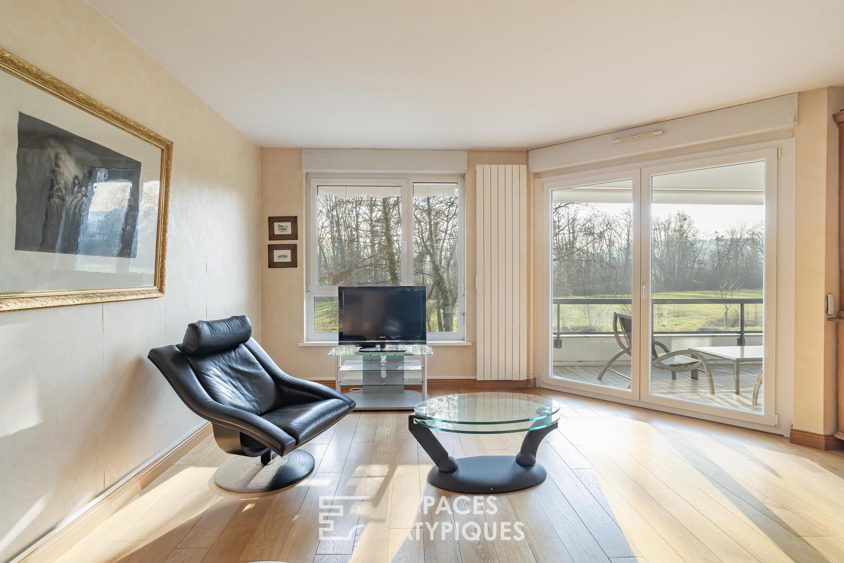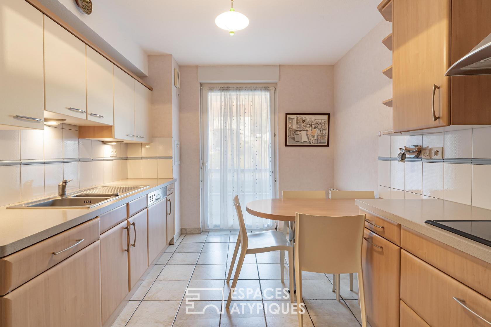 Au pied du majestueux Mont National, cet appartement de 94 m² s’inscrit dans un cadre de vie privilégié au sein d’une copropriété de 1998 parfaitement entretenue. Situé au premier étage avec ascenseur, ce bien se distingue par sa clarté exceptionnelle et ses ouvertures sur l’extérieur, offrant un refuge élégant à quelques minutes seulement du dynamisme historique alsacien.