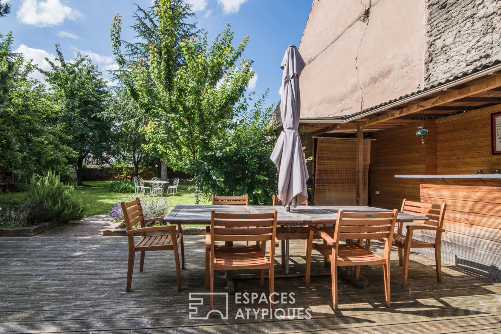 Au cœur du vieux Schiltigheim, nichée au calme d’une impasse sur un terrain de 6.8 ares, cette maison de 250 m² entièrement rénovée est complétée d’une extension à ossature bois et toit végétal.