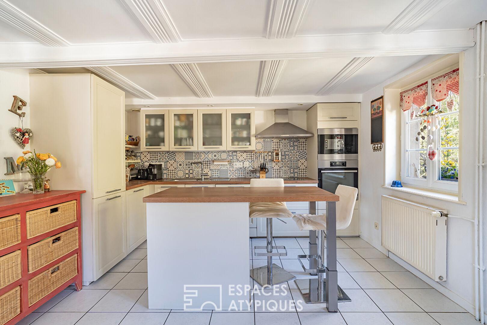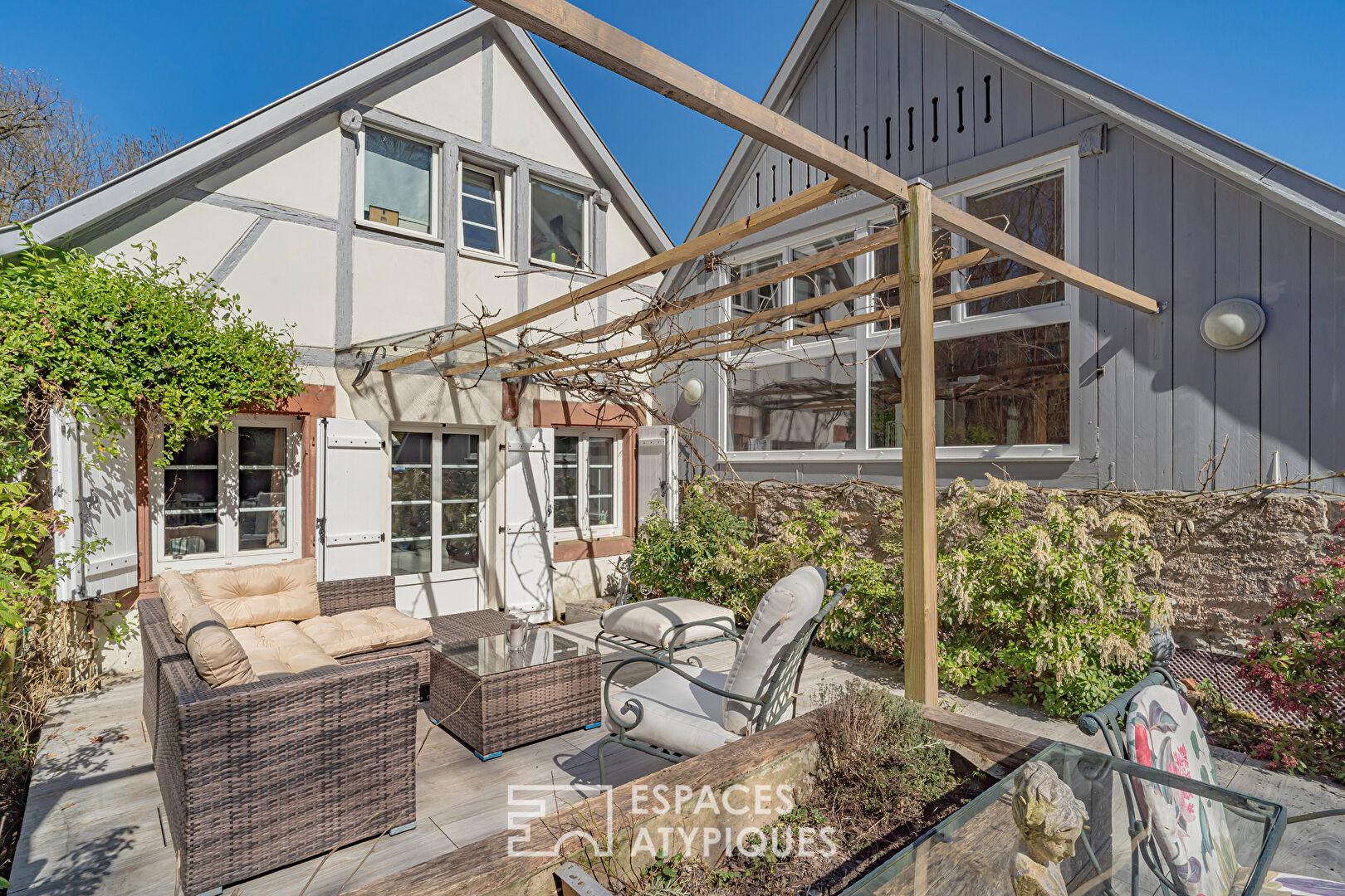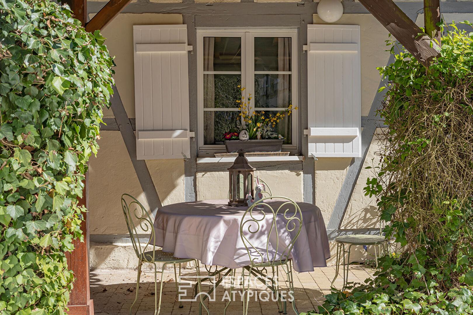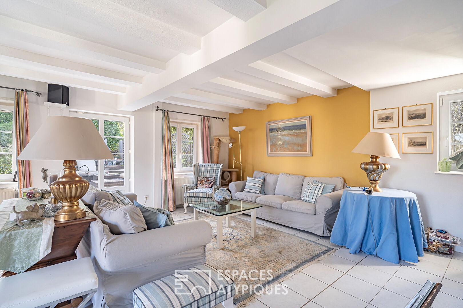 À seulement 25 minutes de Strasbourg, au coeur du Kochersberg, cette propriété de caractère prend place en lisière de forêt et bordée par un ruisseau. Cette ferme alsacienne à colombages, rénovée avec soin, développe 258 m² habitables sur un terrain arboré de 11,45 ares. Elle se compose d’une maison principale et de trois maisonnettes indépendantes actuellement exploitées en chambres d’hôtes, offrant une activité existante à fort potentiel tout en laissant entrevoir de multiples possibilités d’usage. Cour intérieure fleurie, terrasses intimistes et environnement naturel préservé confèrent à ce bien immobilier un charme singulier.