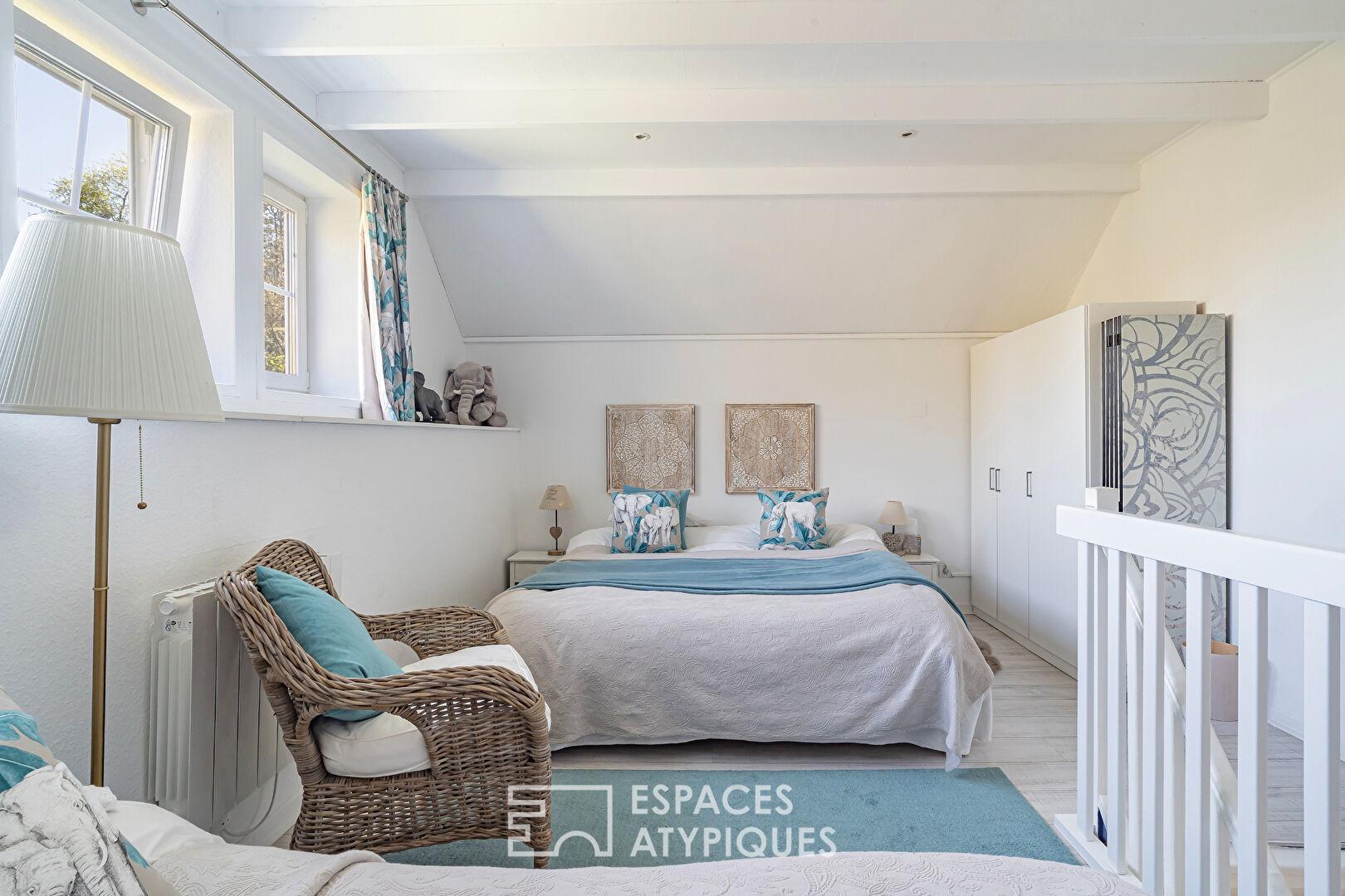 L’ancienne grange a été réhabilitée en salle de réception avec espace repas et cuisine, idéale pour une activité d’accueil ou des projets professionnels. À l’étage, un bureau profite d’une vue dégagée sur les extérieurs, apportant un cadre de travail inspirant. Les trois maisonnettes indépendantes, aménagées avec soin, disposent chacune de leur salle d’eau, espace de vie et couchages, permettant d’accueillir jusqu’à 10 personnes dans un cadre confortable et intimiste.
