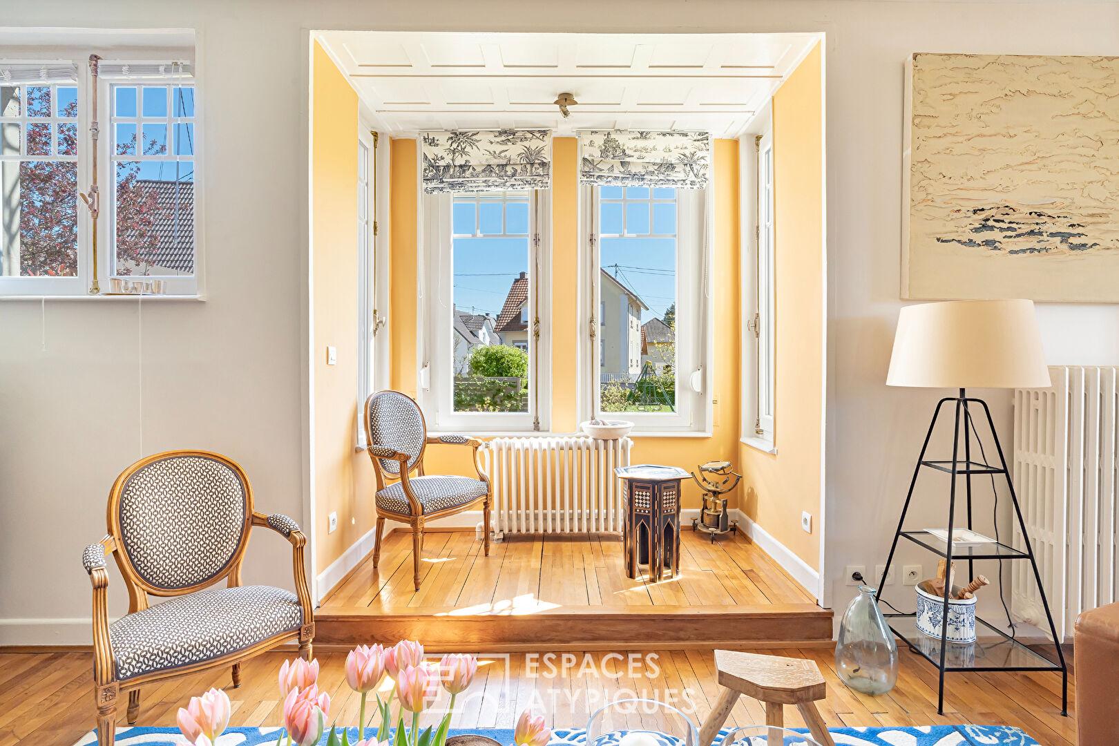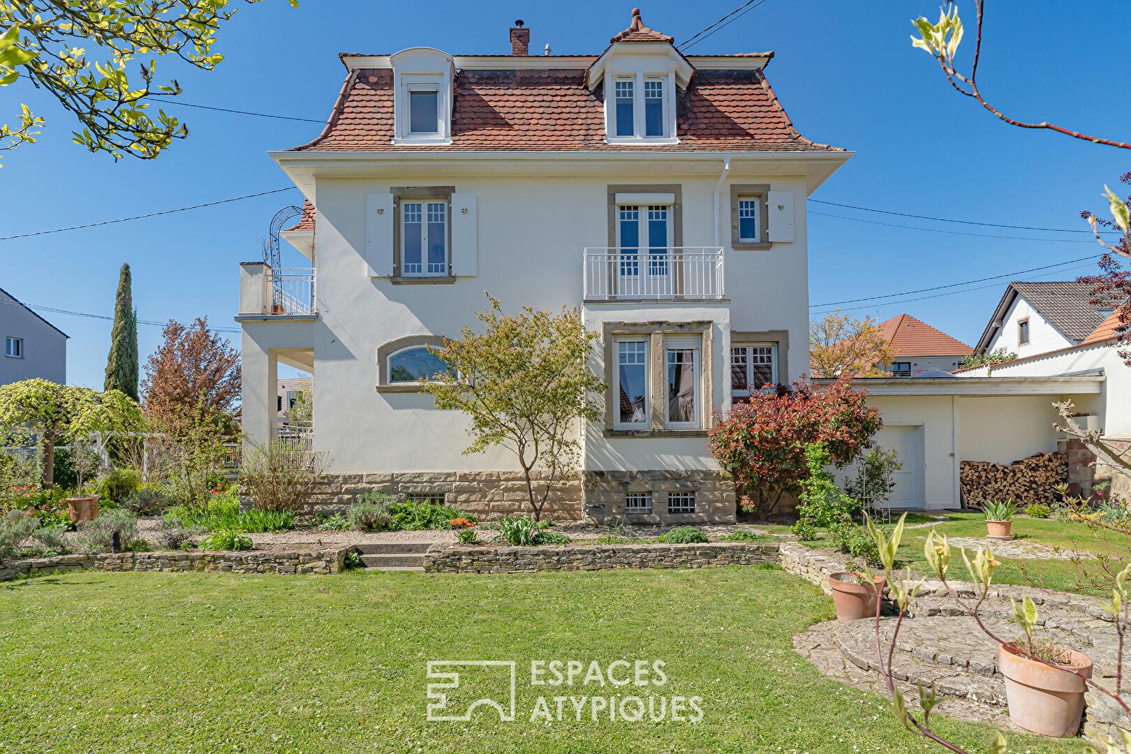 Située au coeur de La Wantzenau, cette demeure bourgeoise de 1904 déploie 275 m² sur un terrain de 7,5 ares. Alliant élégance du début du siècle et rénovation contemporaine soignée, elle propose un cadre de vie d’exception agrémenté d’un jardin arboré et d’un garage double offrant un accès direct sur l’extérieur.