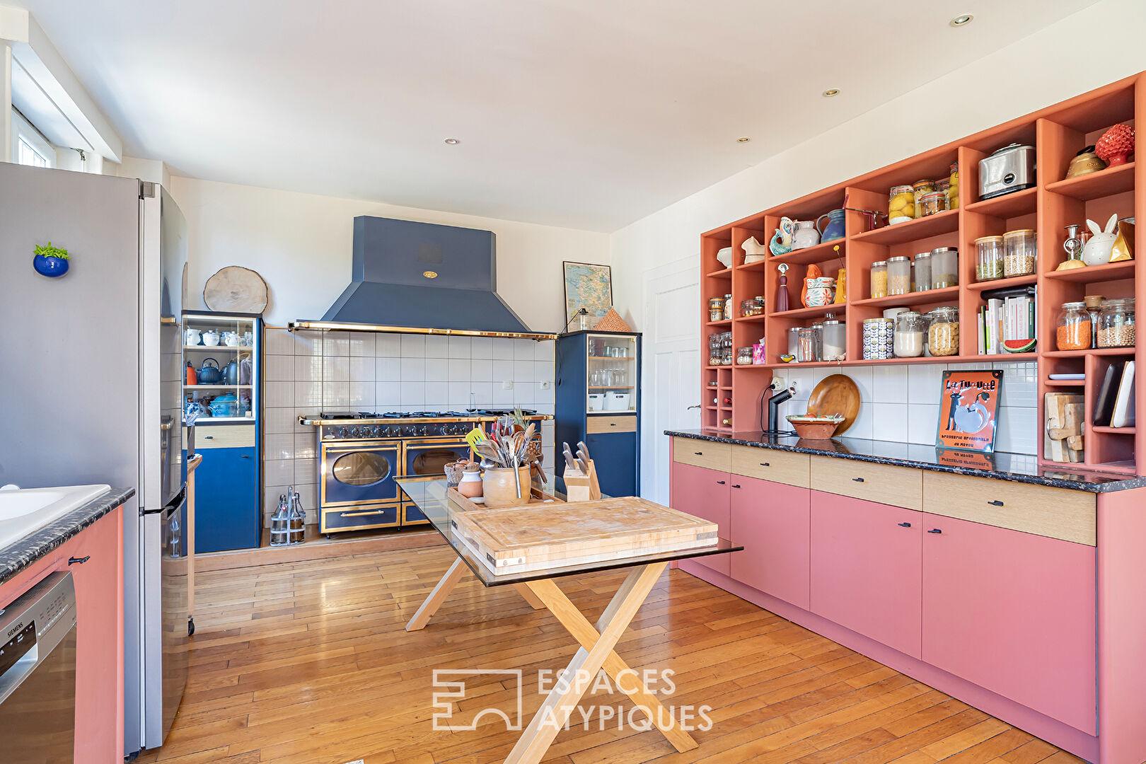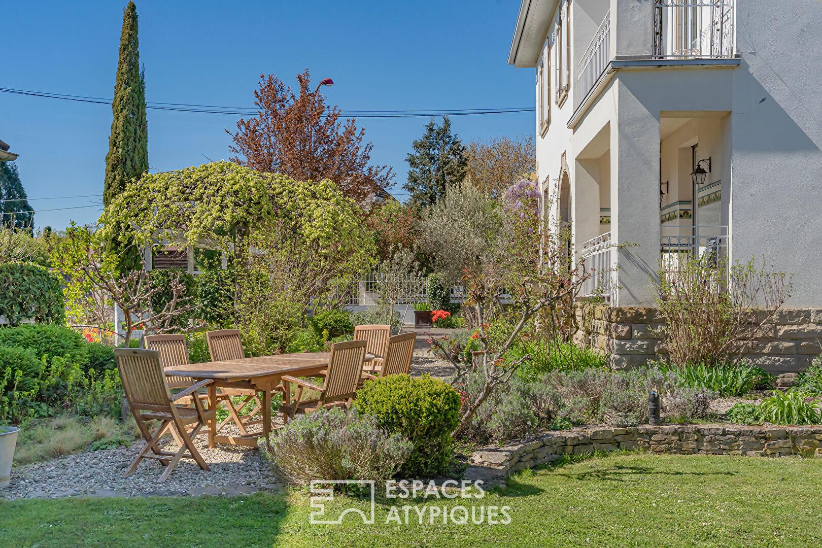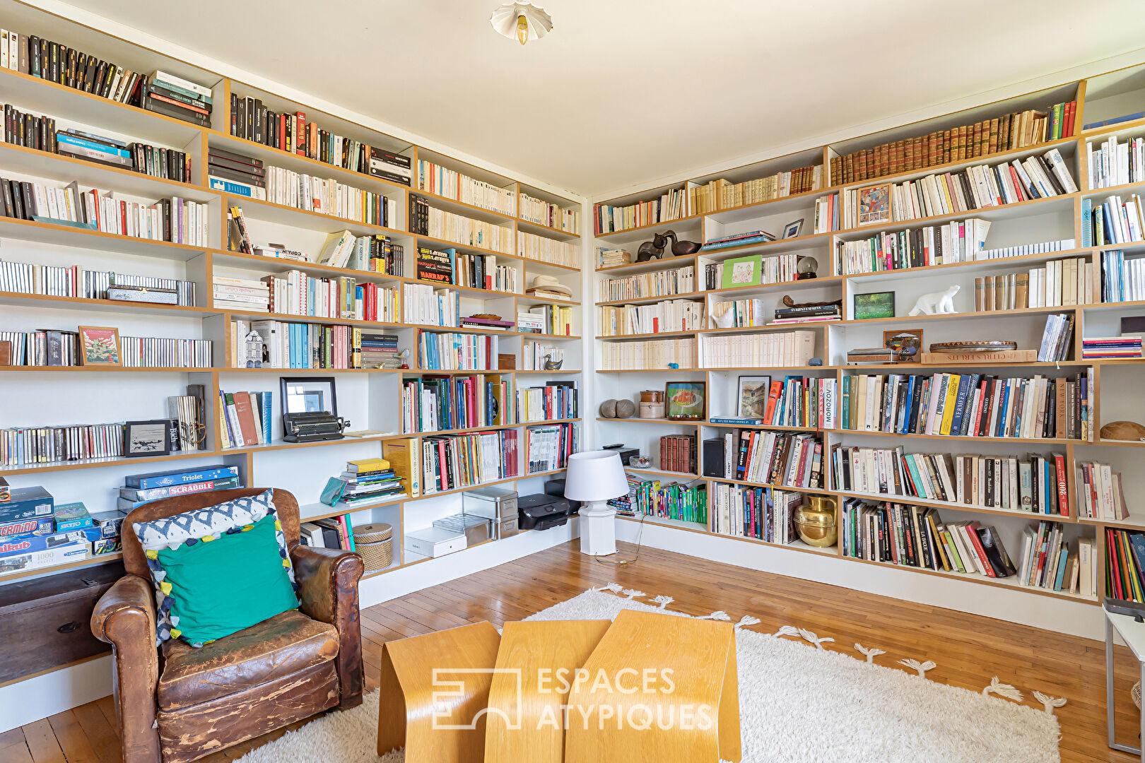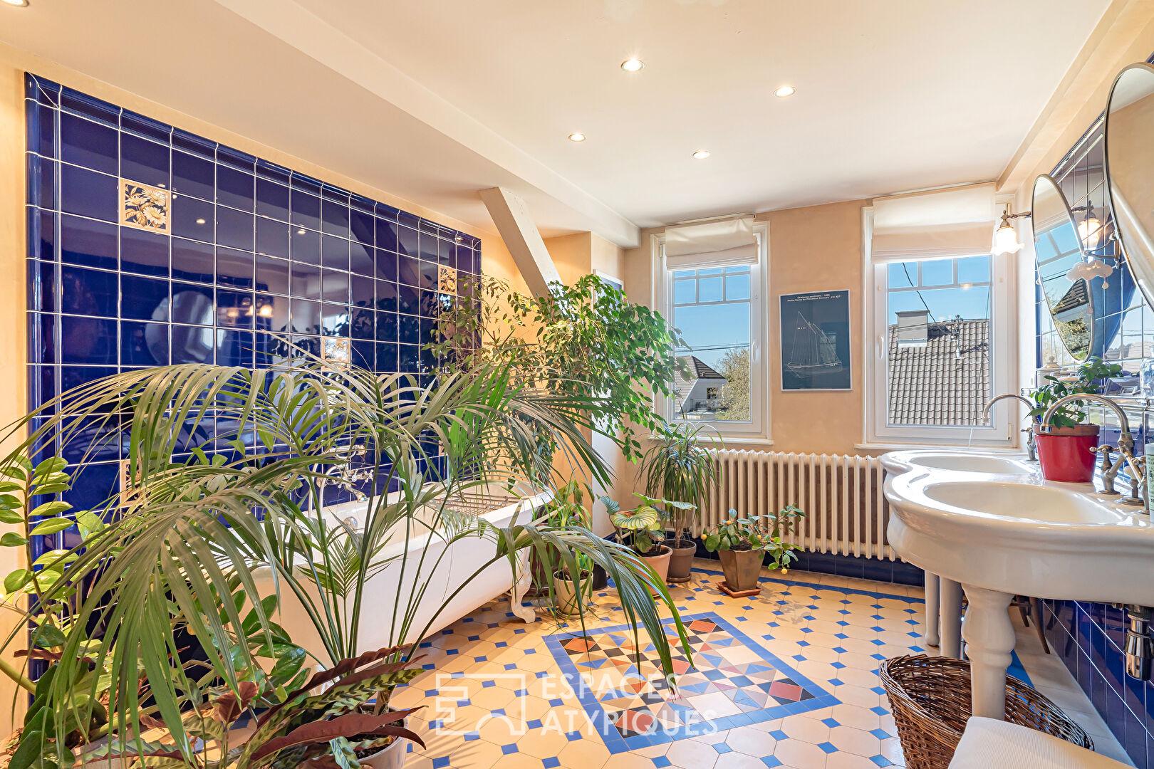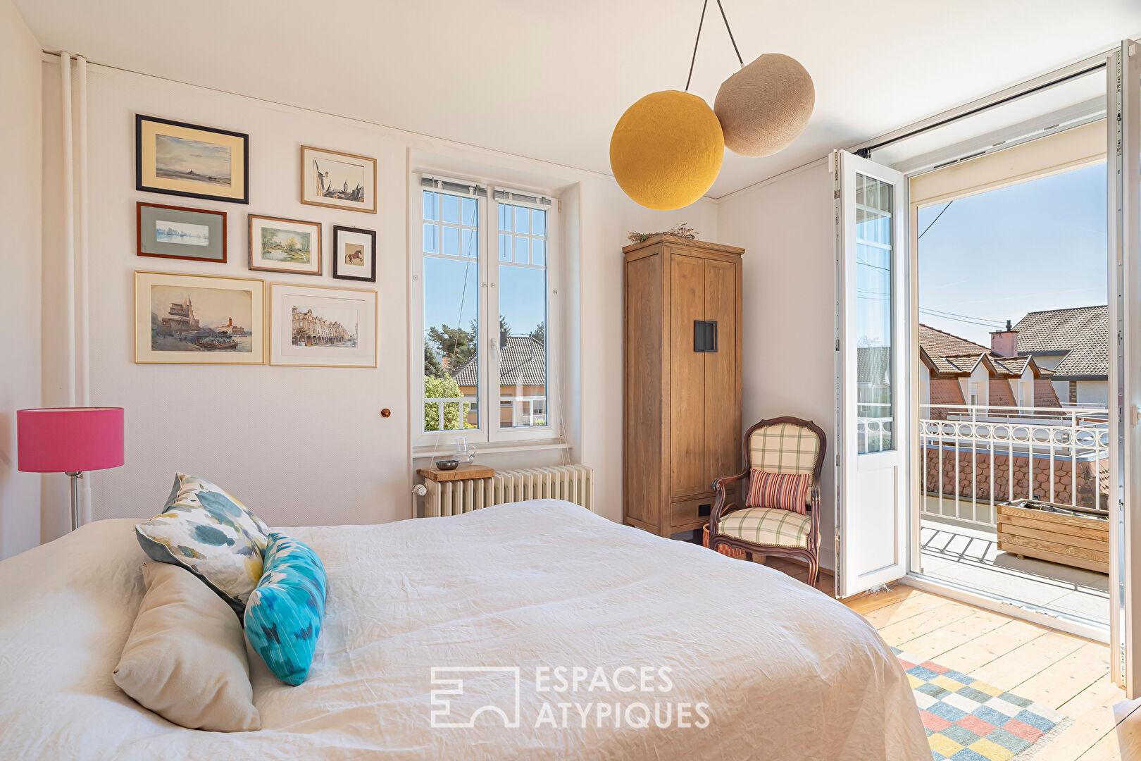 Passé la porte cintrée, l’entrée dévoile une organisation fluide où les volumes et la lumière prédominent. La pièce de vie, orientée plein Sud, s’habille d’un parquet massif d’origine et d’un poêle en céramique ancienne qui souligne le caractère historique du lieu. Un oriel baigne l’espace de clarté, offrant une perspective apaisante sur la verdure. La cuisine dînatoire indépendante, véritable coeur de maison avec son piano de cuisson magistral et une buanderie complètent ce niveau. Un escalier de caractère mène au premier étage dédié au repos avec deux chambres, dont une s’ouvre sur un balcon surplombant le jardin. Une salle de bain au charme anglais et un vaste espace bibliothèque sur mesure complètent ce palier. Le dernier niveau accueille trois chambres supplémentaires dont une vaste suite parentale distinguée par son oeil-de-boeuf et son dressing indépendant.