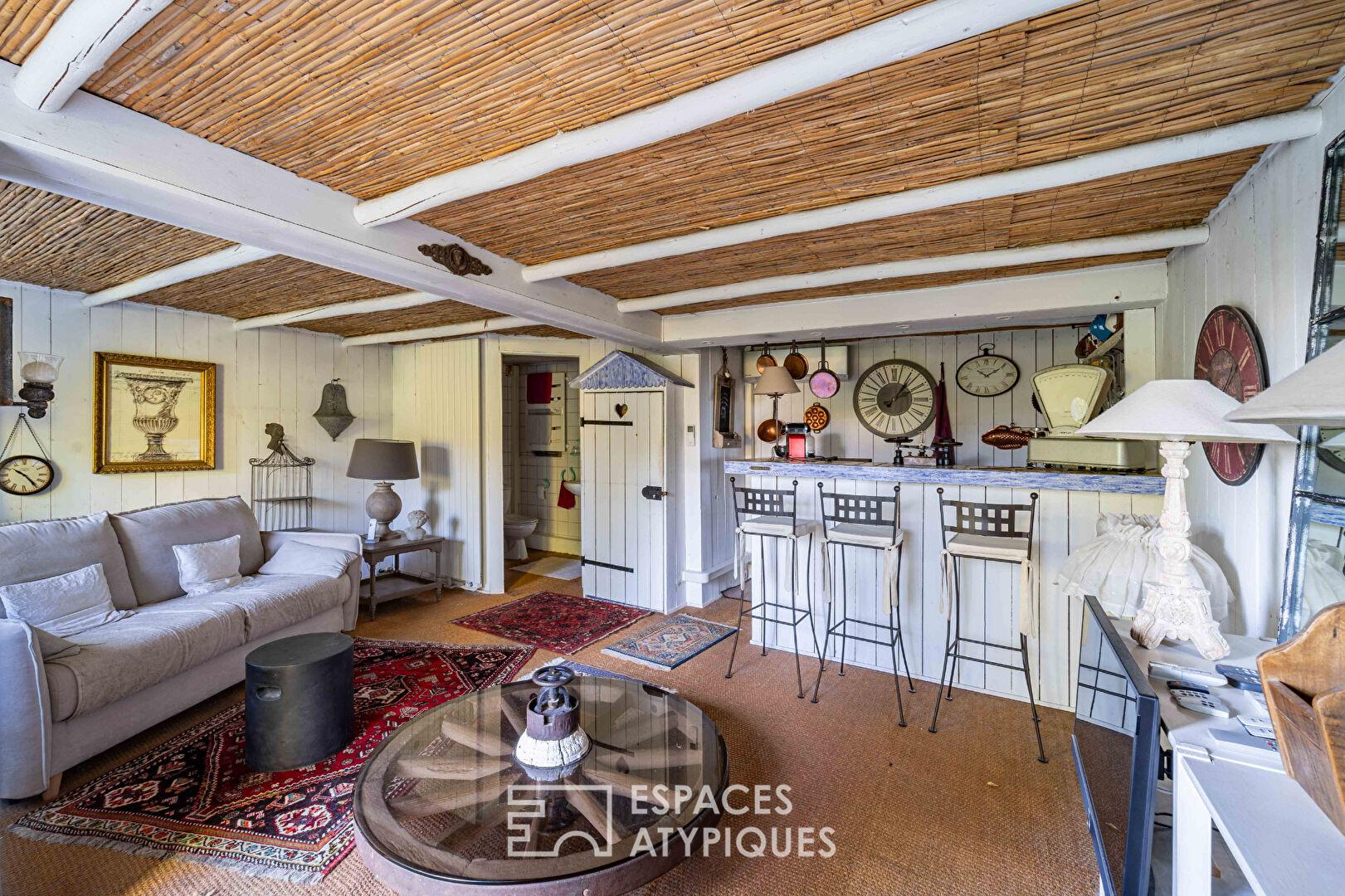 L’étage supérieur est dédié à l’espace nuit. Il se compose de deux chambres, d’un bureau et d’une salle de bain. En annexe, un logement indépendant propose une belle pièce de vie accompagnée d’une cuisine ouverte avec son bar et d’une salle d’eau. Ce volume polyvalent peut être transformé en suite d’amis ou servir de lieu propice à l’exercice d’une profession libérale.