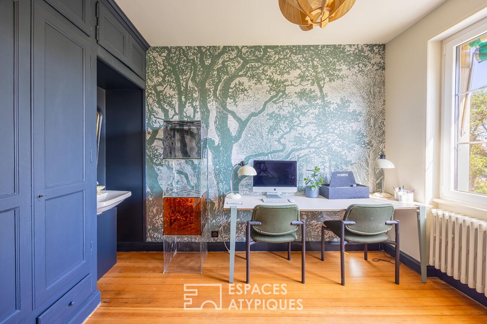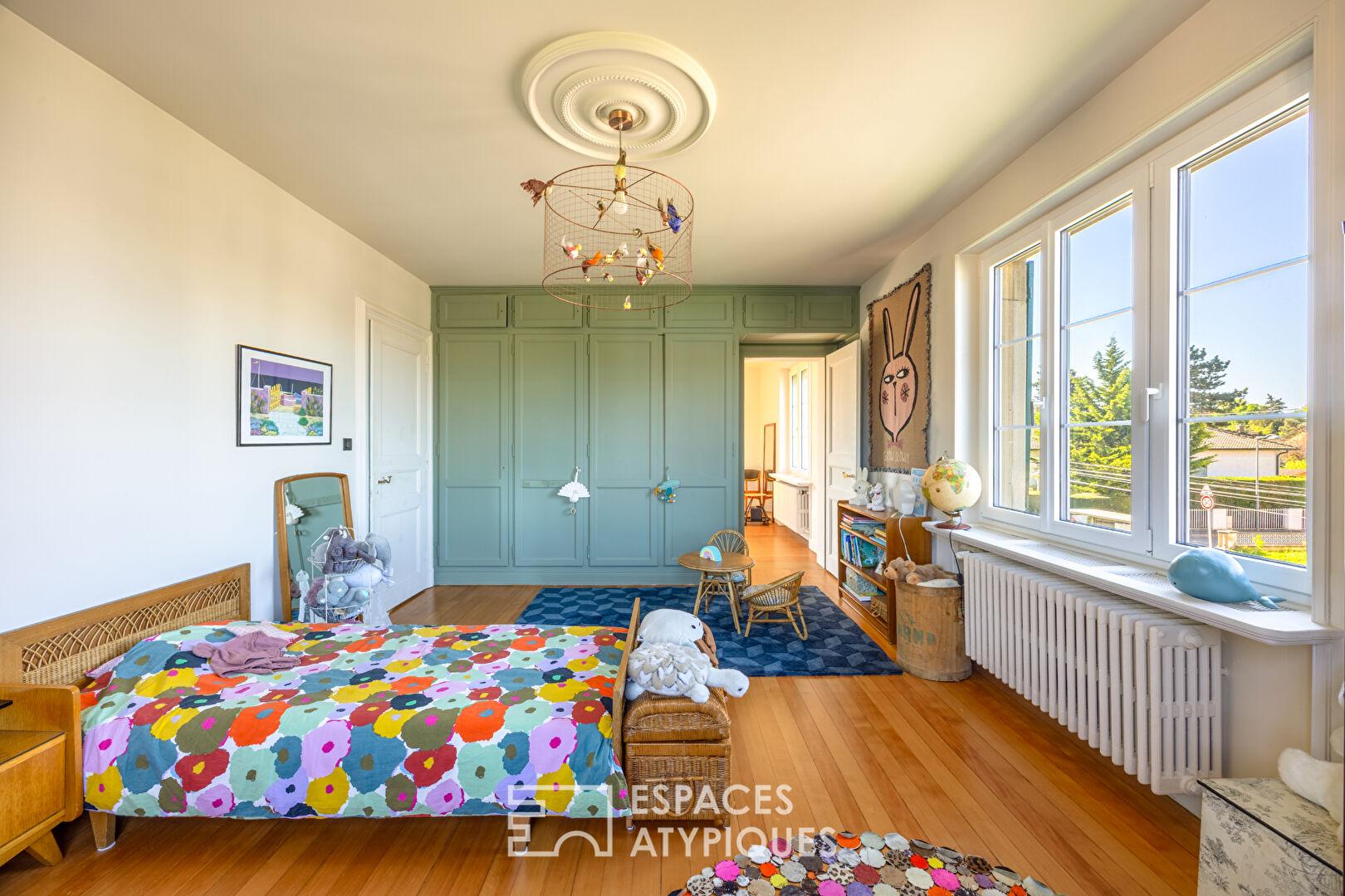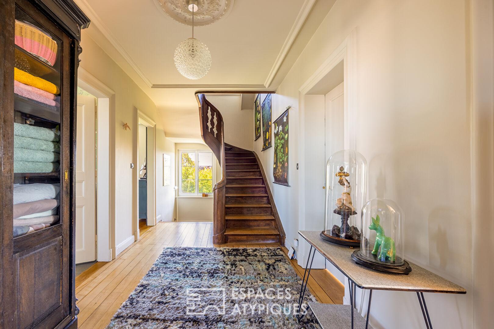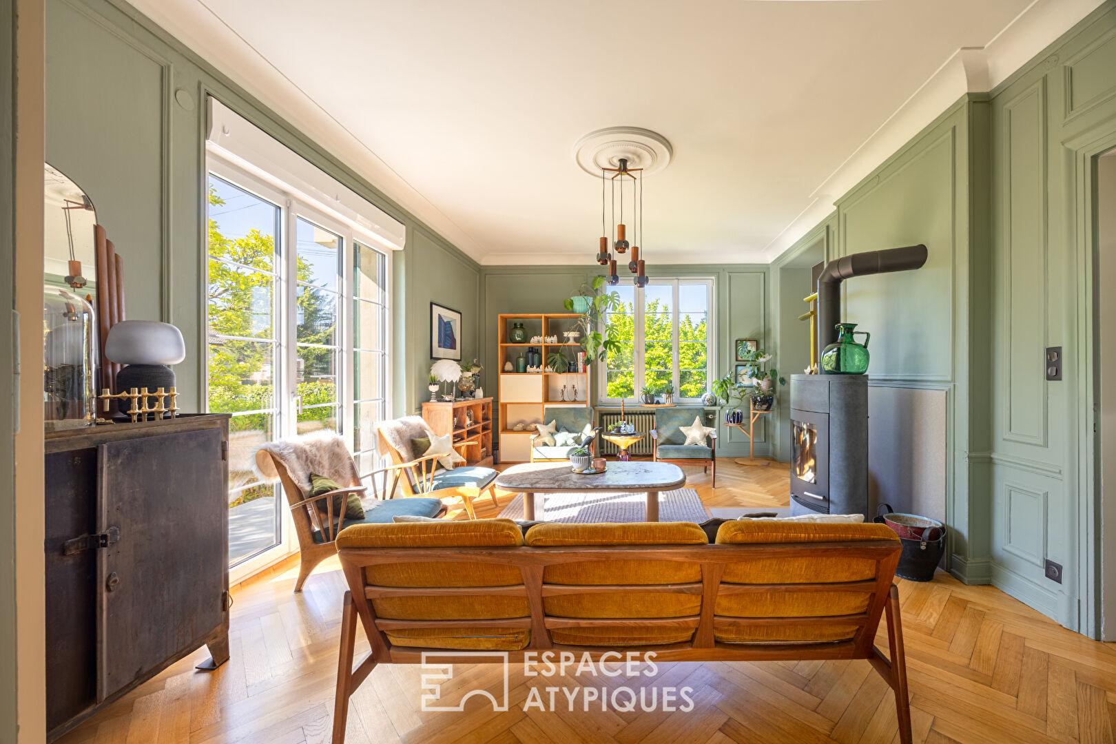 Située au coeur d’un environnement résidentiel recherché, cette demeure de caractère construite en 1932 développe 243 m² habitables sur un terrain clos et arboré de 974 m². Entièrement rénovée en 2024 avec des matériaux nobles et des prestations contemporaines, cette maison de maître conjugue authenticité architecturale et confort actuel. Balcons, terrasse, sous-sol complet, double garage et jardin paysager structuré autour d’un magnolia centenaire composent un cadre de vie rare à proximité immédiate du centre-ville.