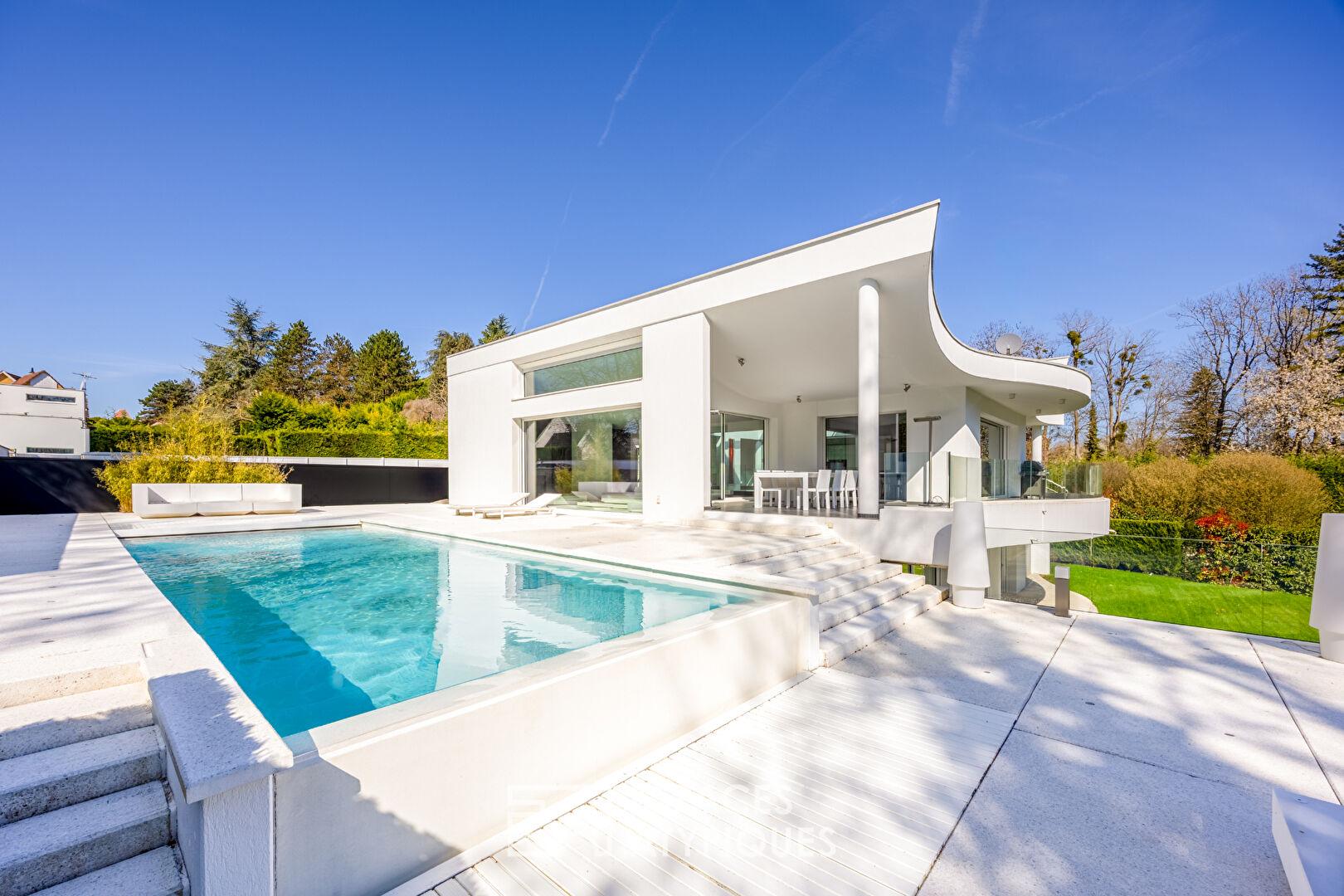 Une buanderie, deux caves ainsi qu’un triple garage viennent compléter les nombreux atouts de ce bien exceptionnel. Ses nombreux aménagements sur mesure particulièrement soignés et ses volumes hors nomes tournés vers l’extérieur feront le bonheur des amateurs du minimalisme et de l’épure contemporaine.