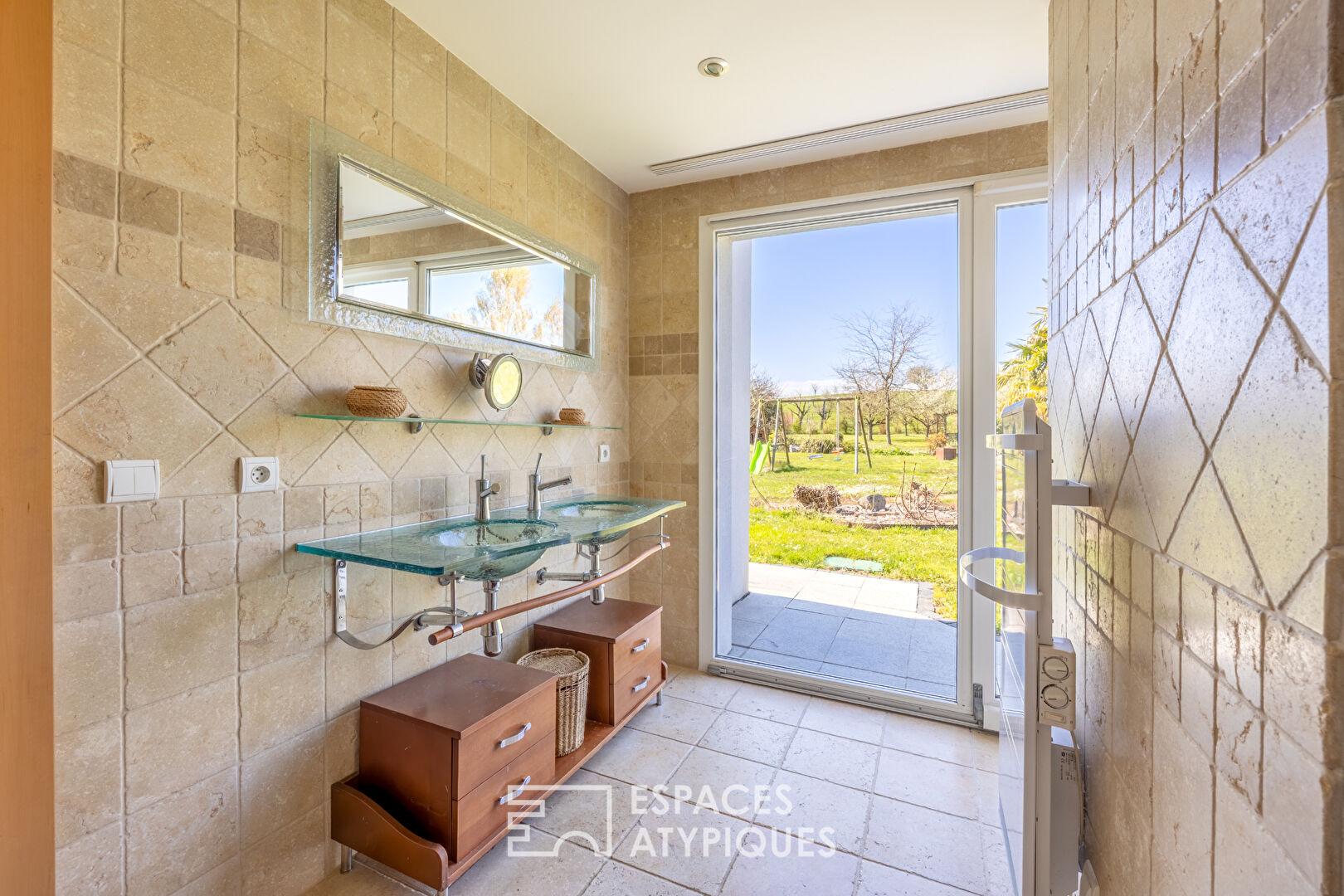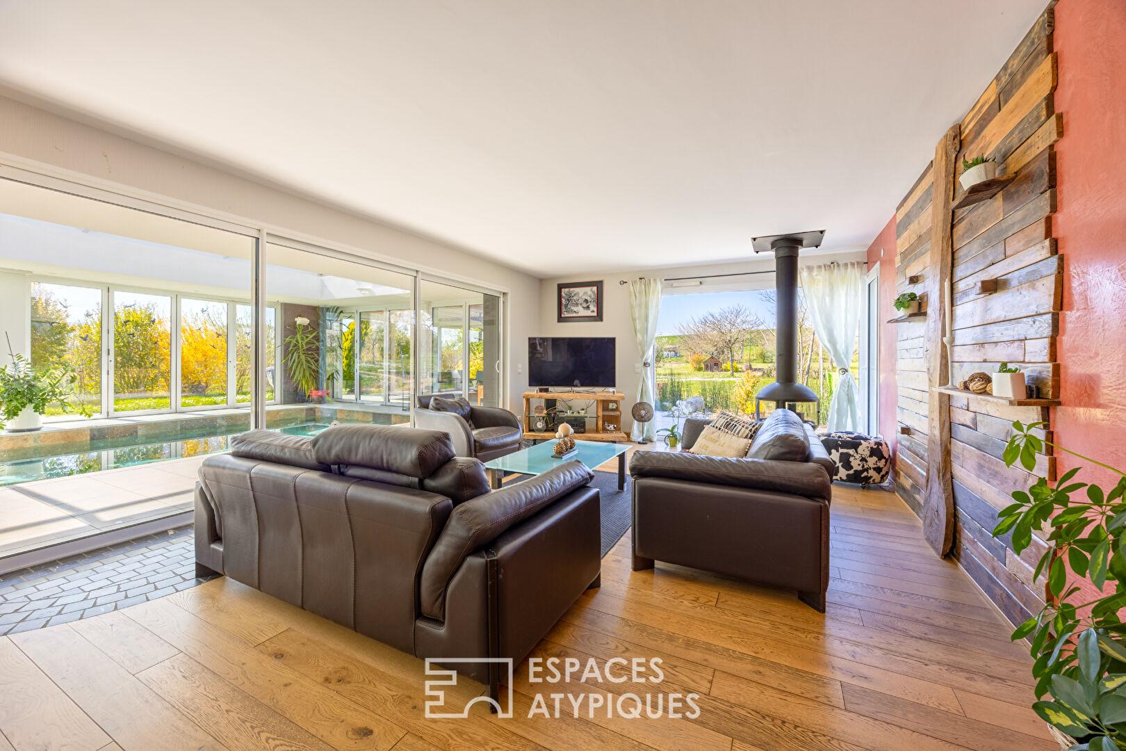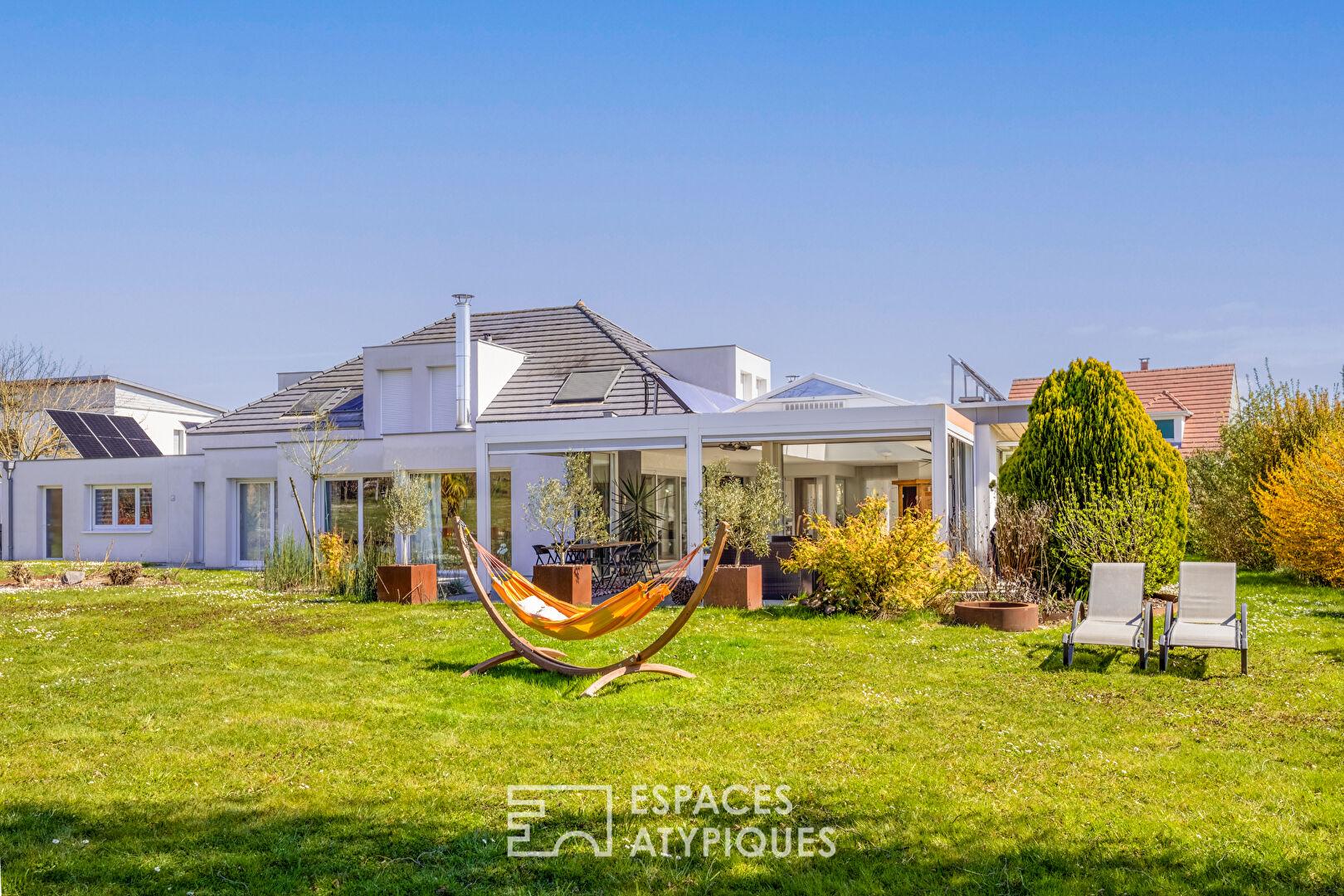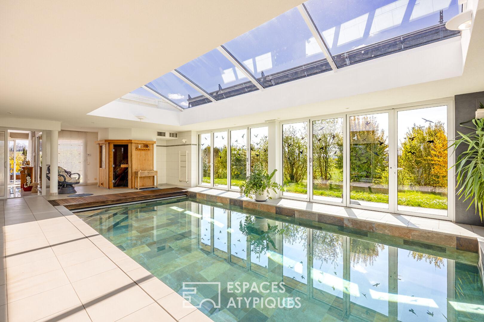 Contemporaine avec piscine intérieure et son vaste jardin arboré
