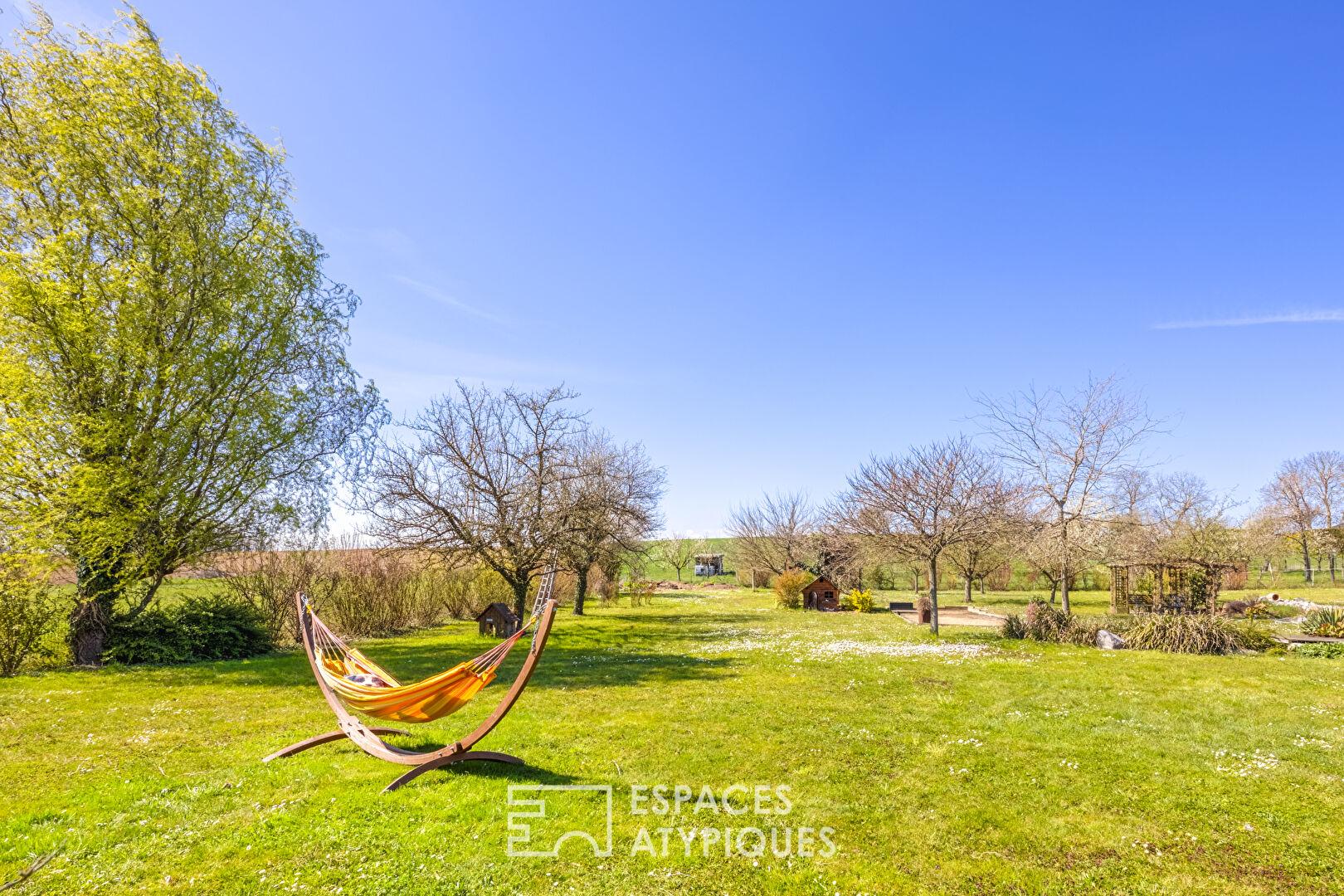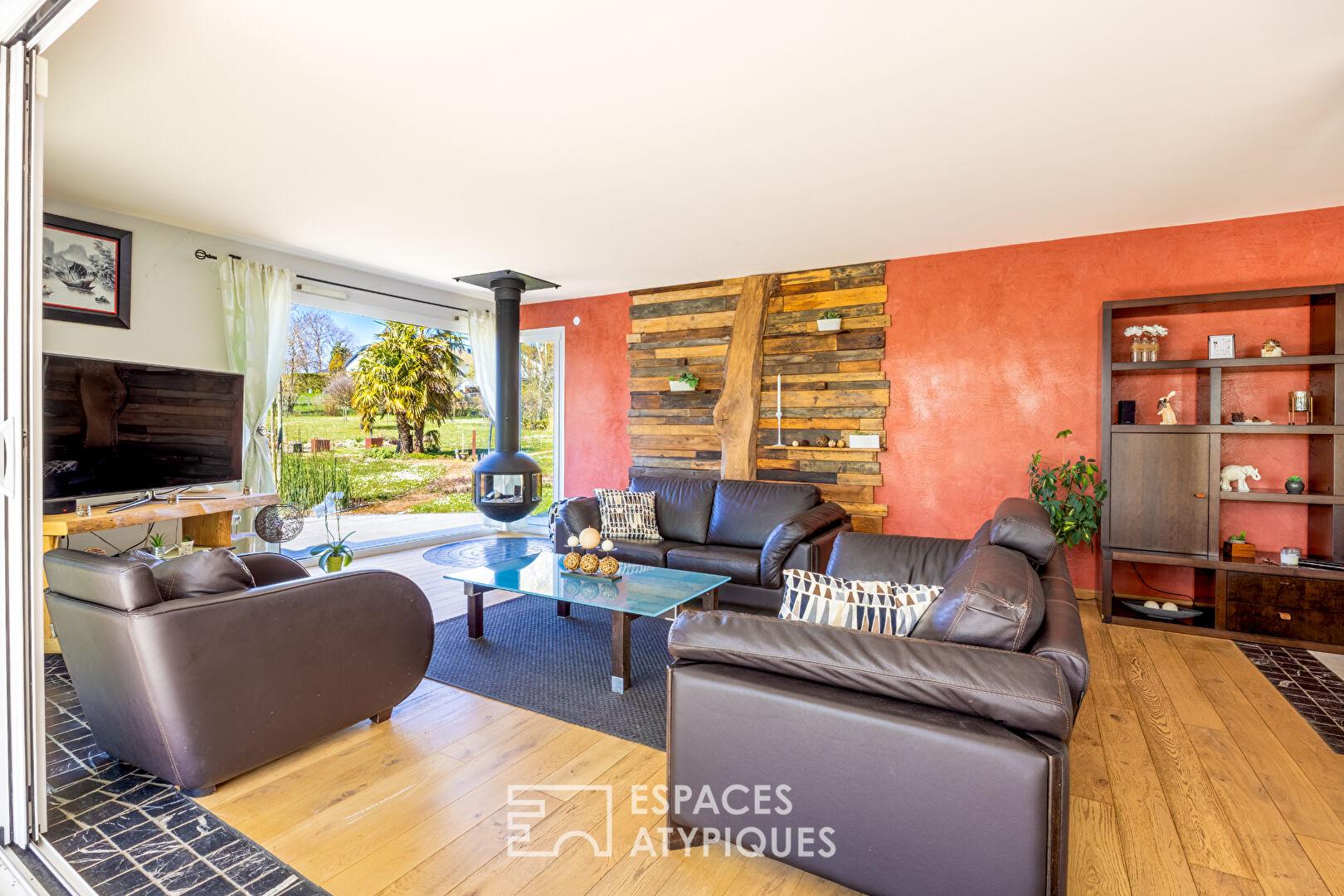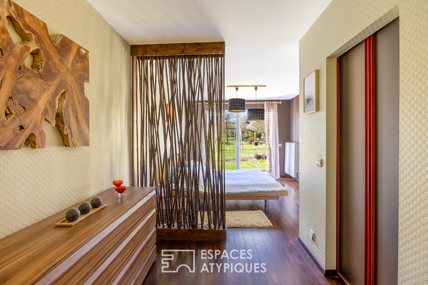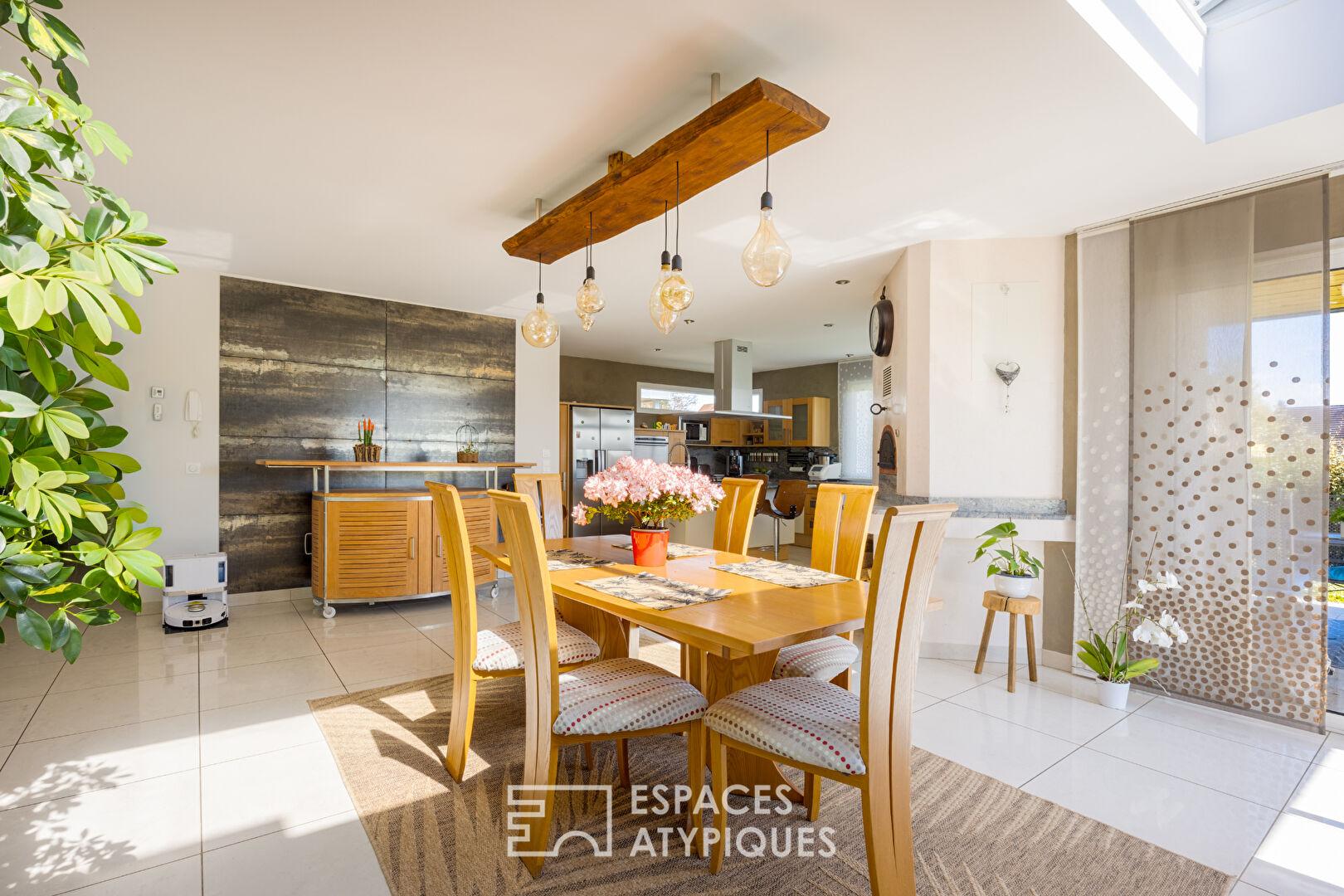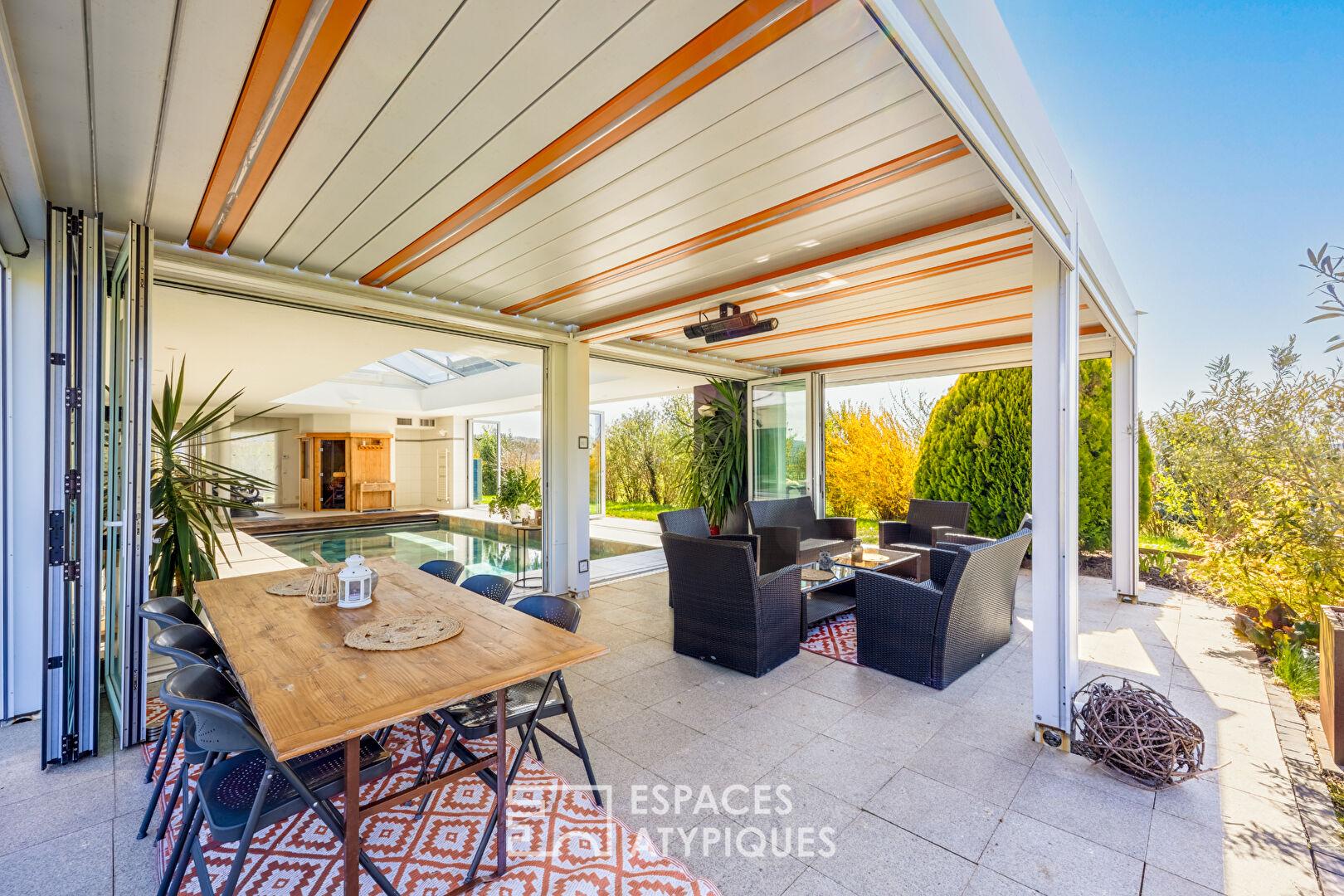 Contemporaine avec piscine intérieure et son vaste jardin arboré
