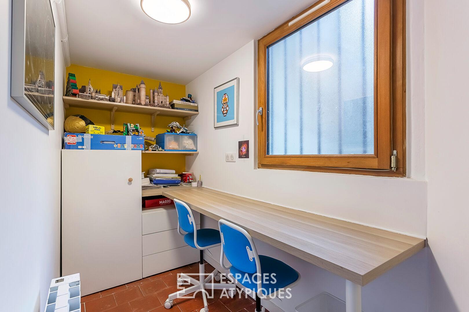 Le coin nuit se compose de trois chambres, chacune offrant une atmosphère singulière : deux chambres au calme absolu sur cour et une troisième en second jour.