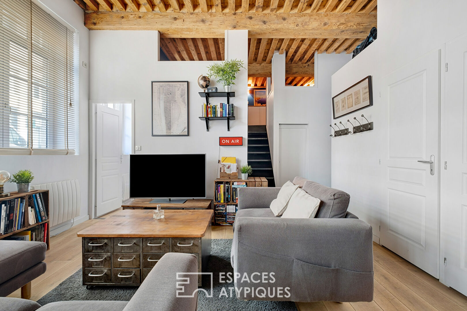 Prenant place au sein d’un immeuble ancien, il offre tout le charme typique des canuts du secteur : belle hauteur sous plafond, pierres et poutres apparentes, parquet…
