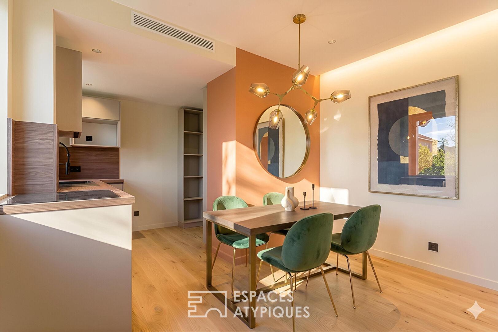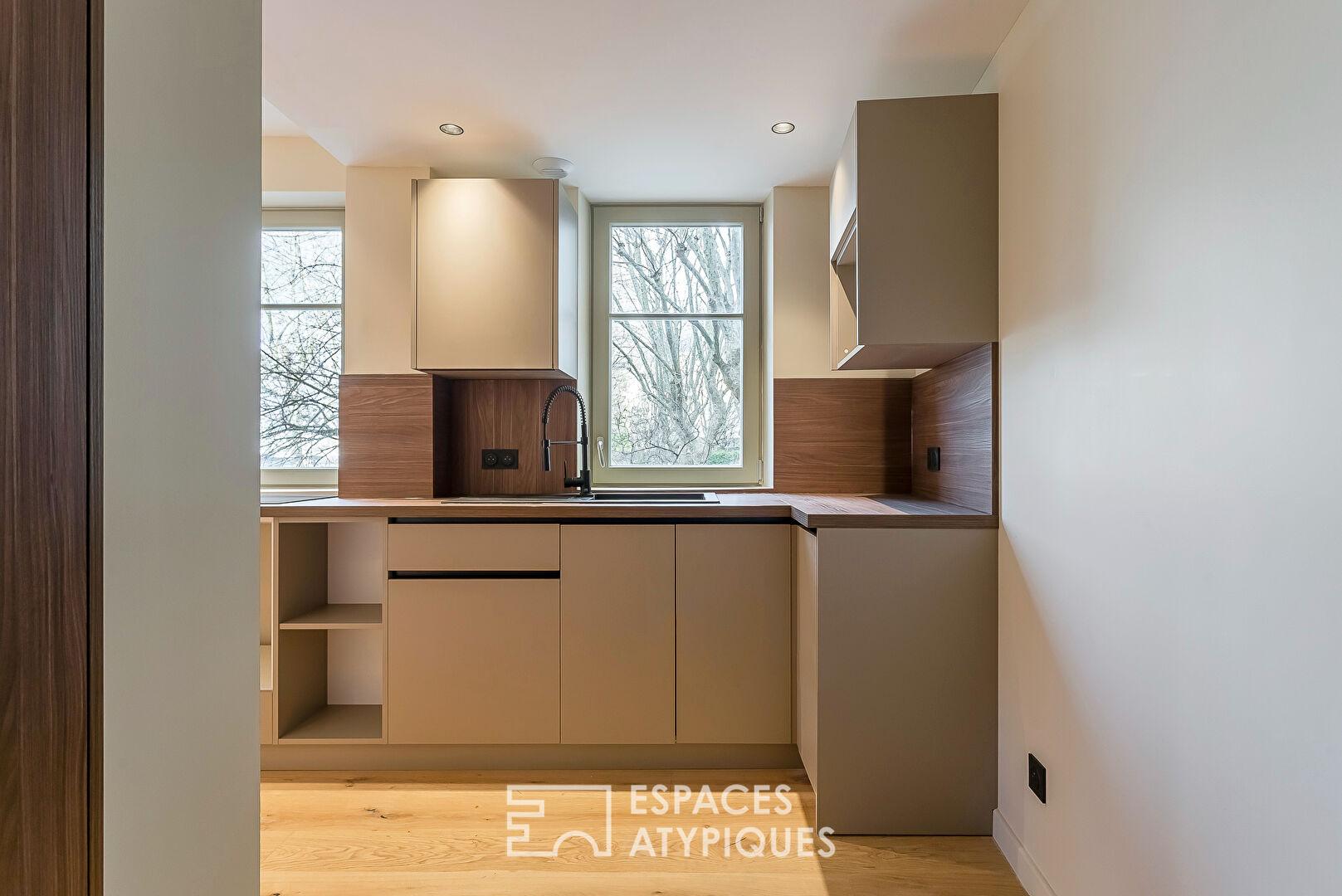 Parquet en chêne massif, moulures, pompe à chaleur : tels sont les atouts qui permettent à cet appartement d’allier une atmosphère chaleureuse à une rénovation haut-de-gamme.