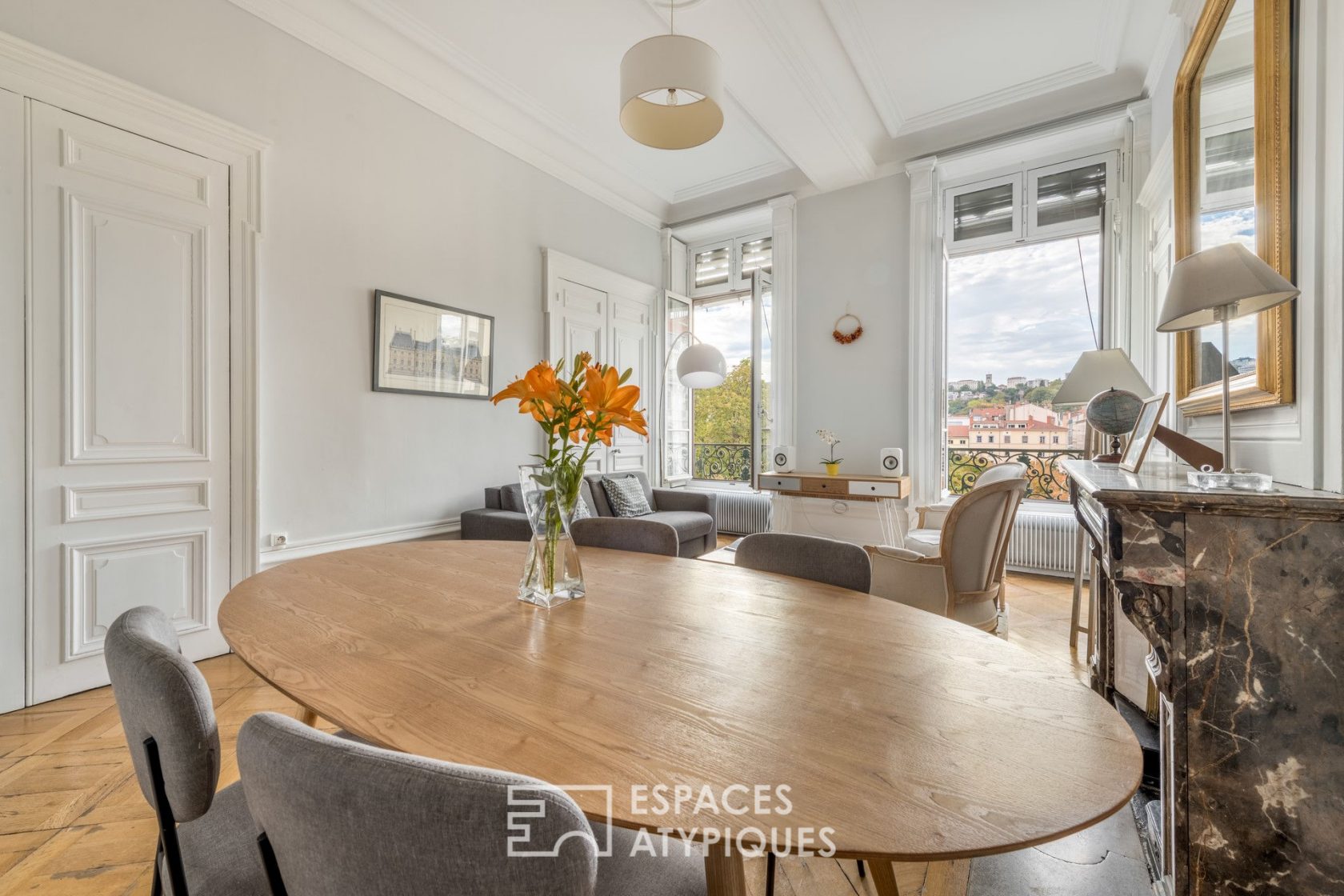 Situé à Lyon 2ème, à proximité du métro Ampère-Victor Hugo, cet appartement de 81m² carrez prend place au 3ème étage avec ascenseur d’un bel immeuble ancien et bénéficie d’une magnifique vue dégagée sur les hauteurs de Lyon.