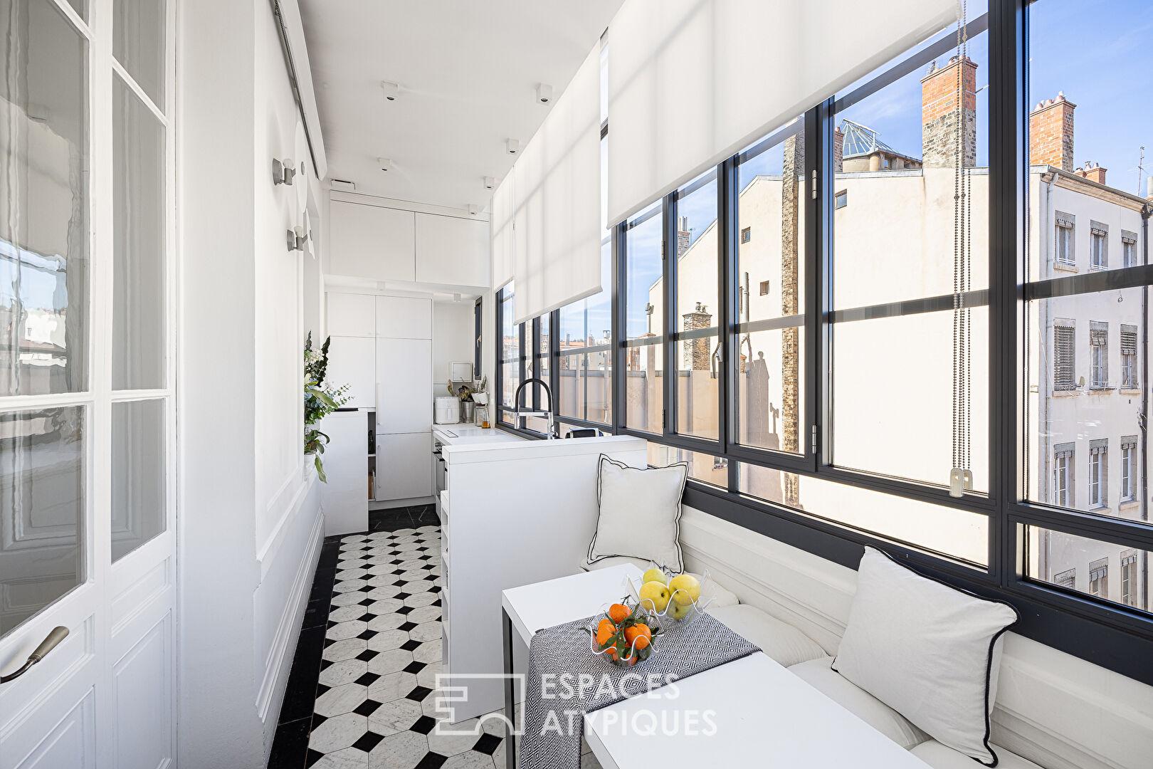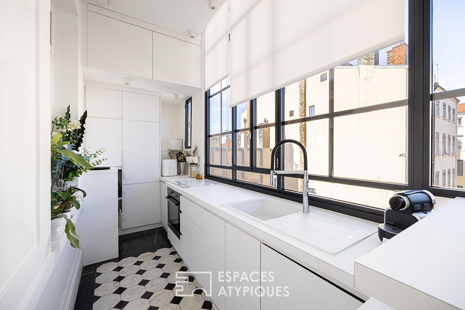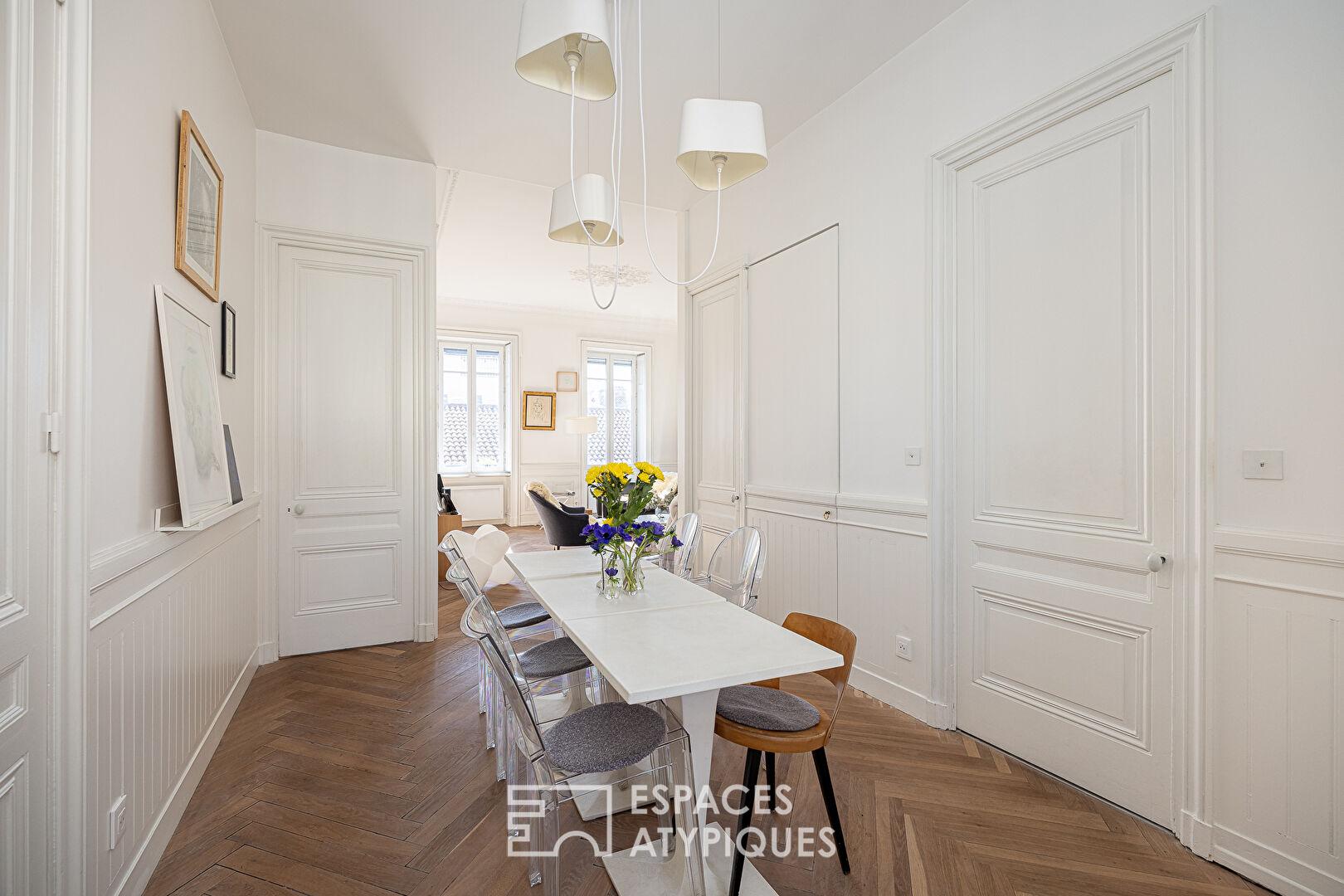 Situé dans le quartier prisé de Lyon 2, cet appartement d’exception de 88m2 carrez bénéficie d’une rénovation d’architecte alliant élégance classique et modernité radicale.
