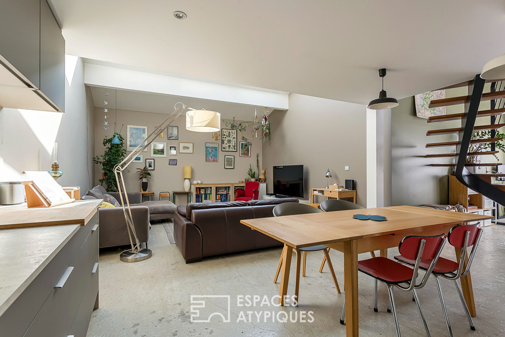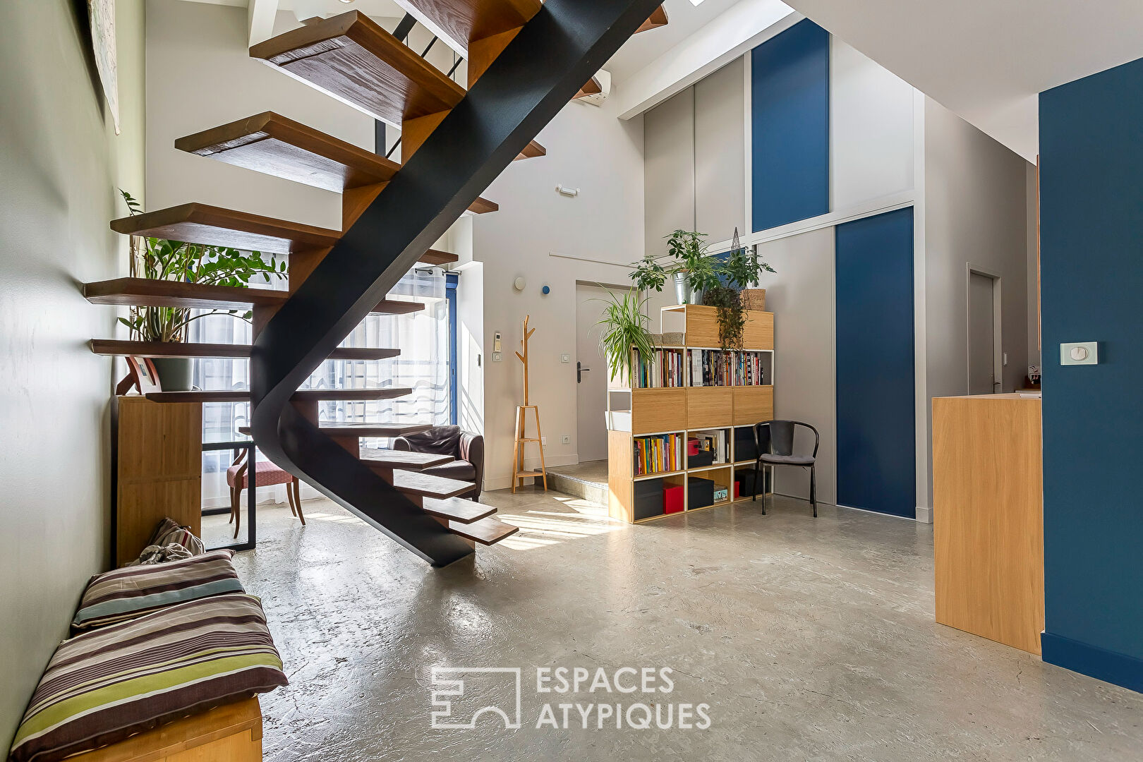 Ce bien aux lignes architecturales audacieuses bénéficie d’une rénovation soignée, conjuguant modernité et caractère industriel.
