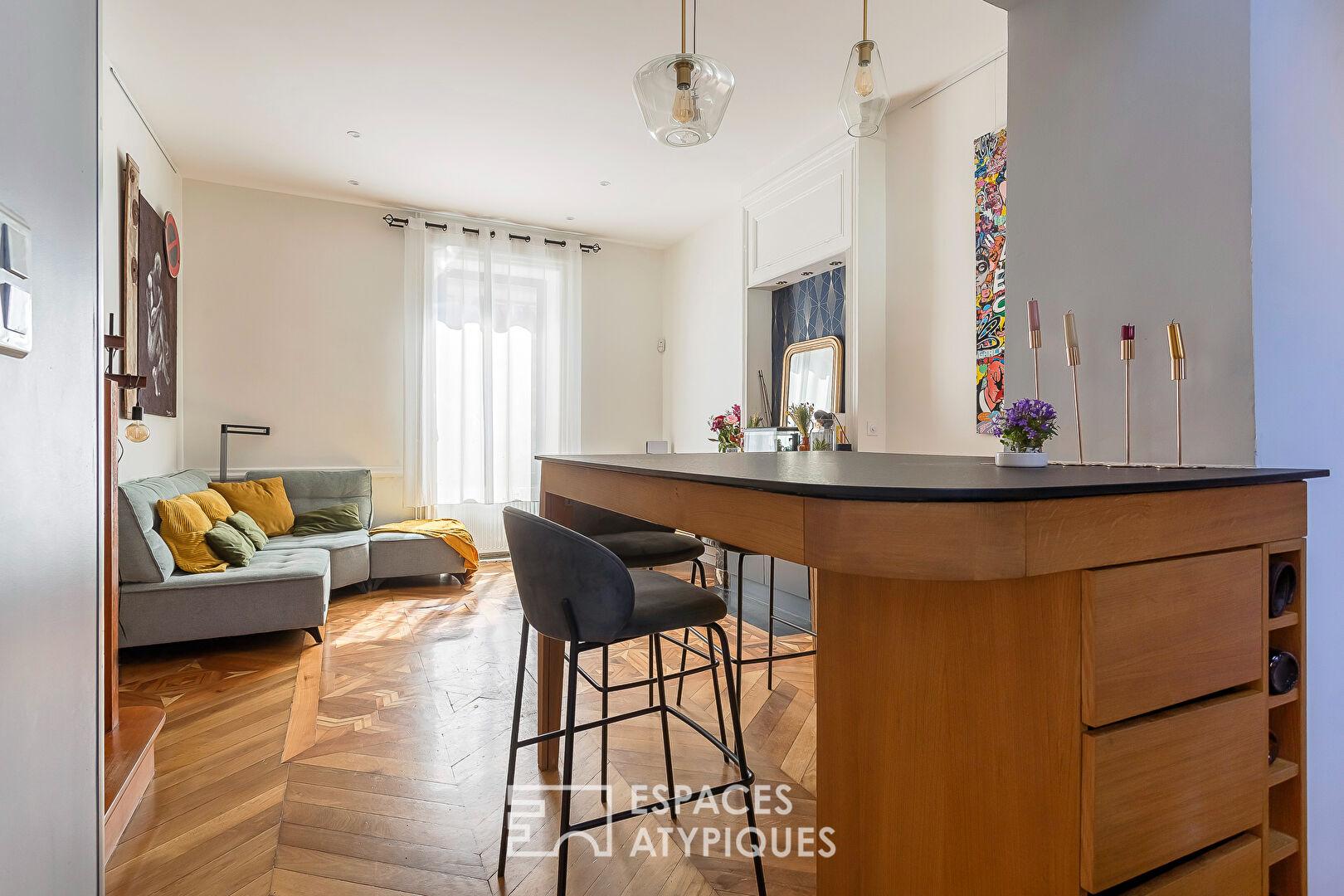 Située au coeur du très recherché quartier de Montchat, dans une petite rue calme et résidentielle, cette élégante maison atypique de 1920 d’environ 80 m², entièrement rénovée, séduira les amateurs de biens de caractère alliant authenticité et confort moderne.