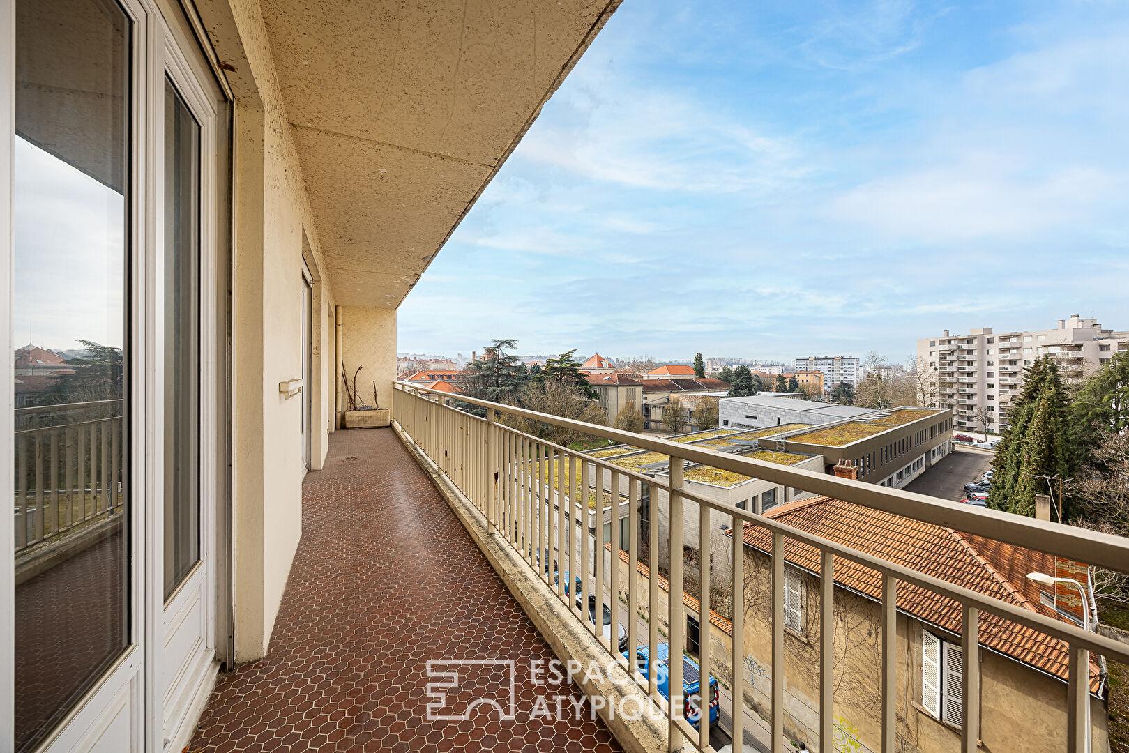 Ce bien, doté d’un balcon filant, offre une opportunité rare pour les amateurs de rénovation d’architecte en quête d’un lieu de vie à personnaliser.