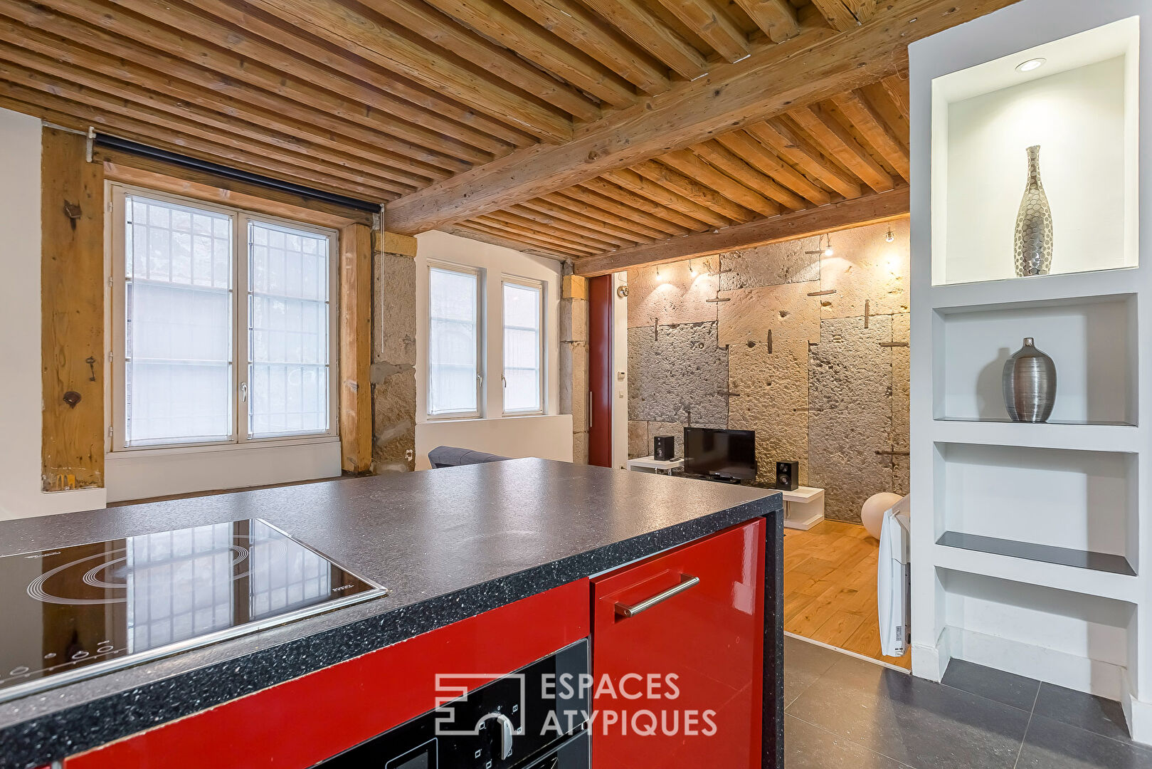 Situé au coeur du quartier Saint-Georges dans le Vieux Lyon, cet appartement en rez-de-chaussée dévoile tout le charme et l’authenticité d’un ancien atelier d’ébéniste récemment réhabilité.