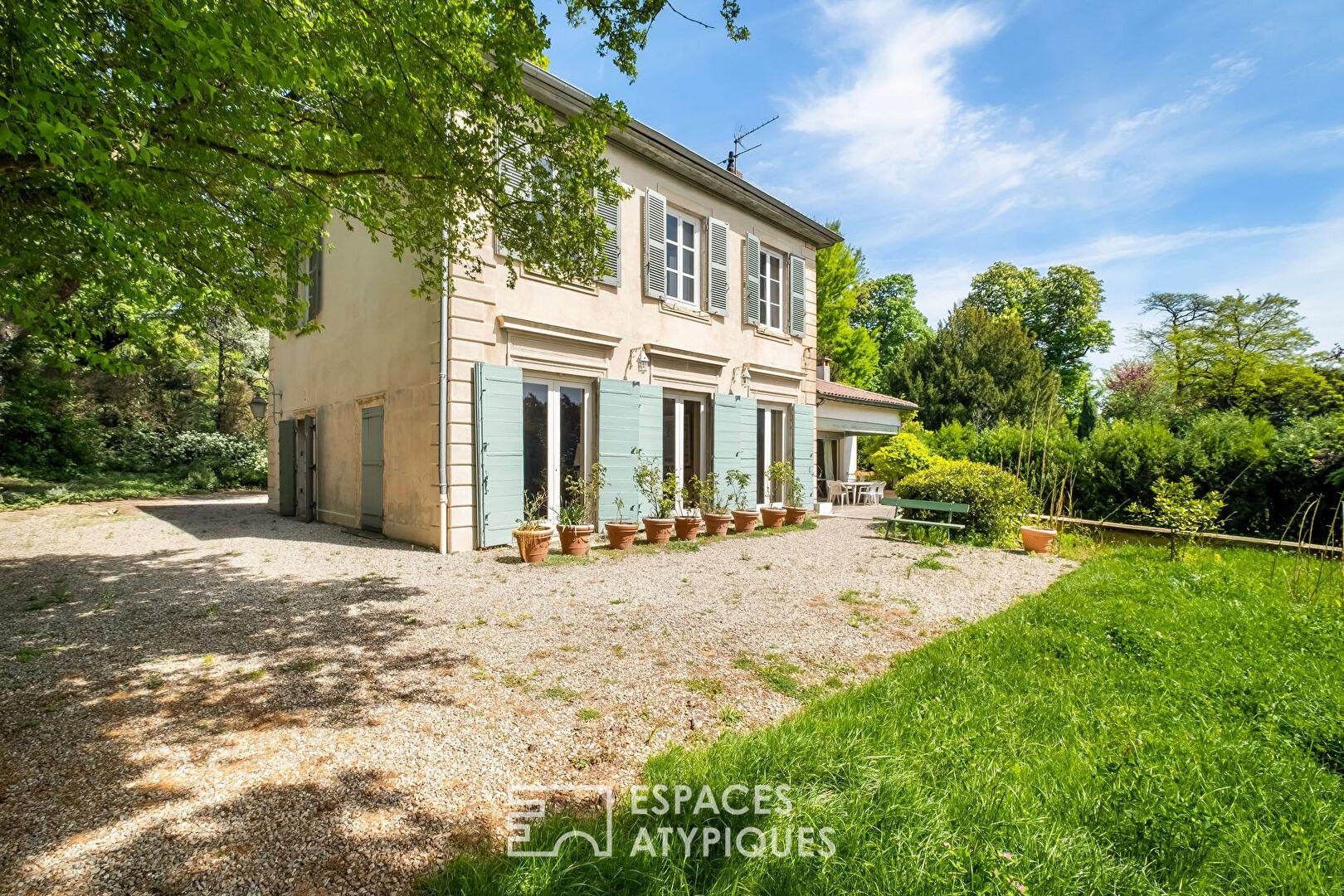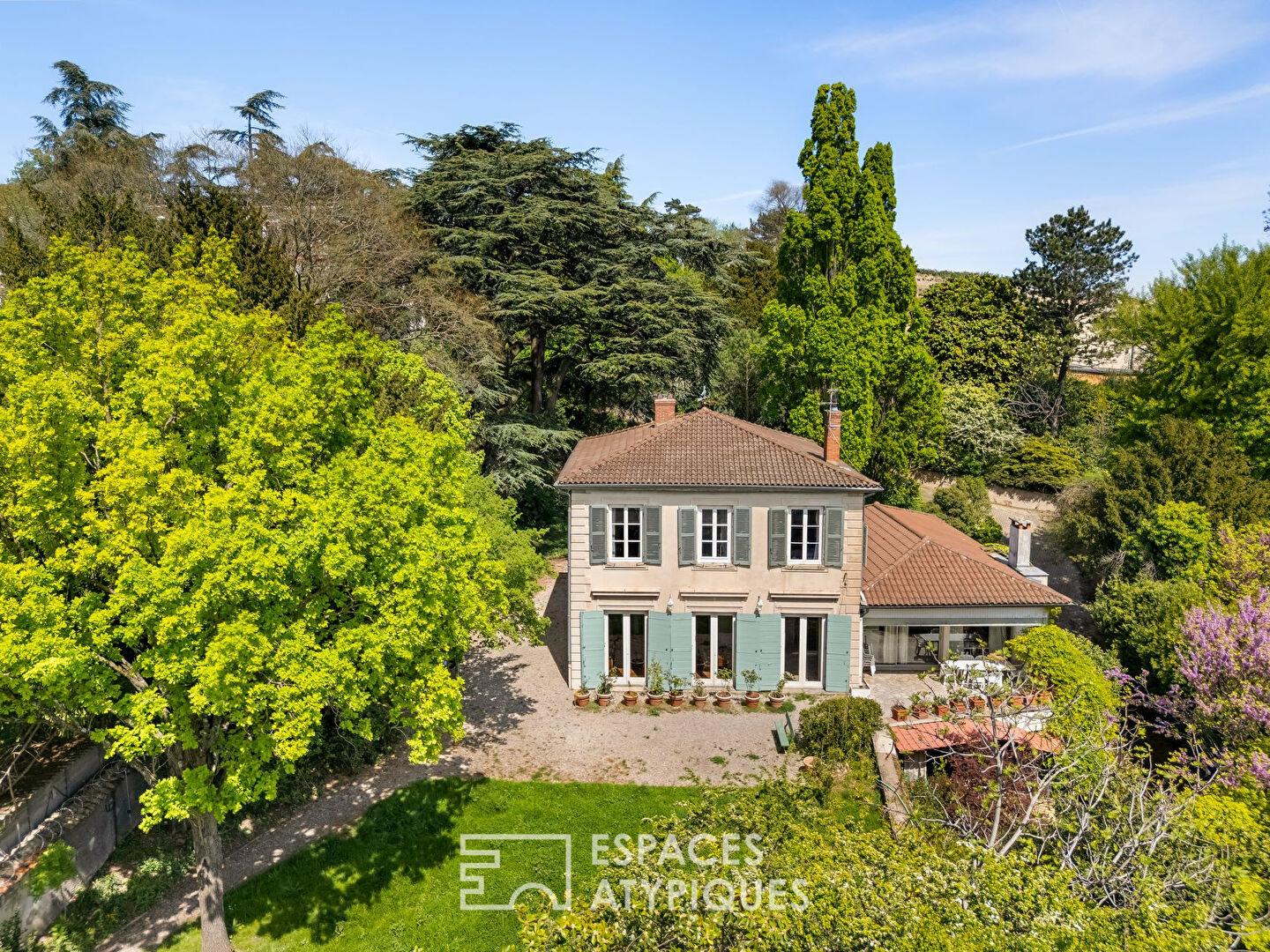 Située à Saint-Just, dans le très recherché 5? arrondissement de Lyon, cette maison en pisé d’environ 243m², édifiée en 1850 et agrandie dans les années 1960, s’inscrit au coeur d’une parcelle arborée de 3 332 m² exposée plein sud.