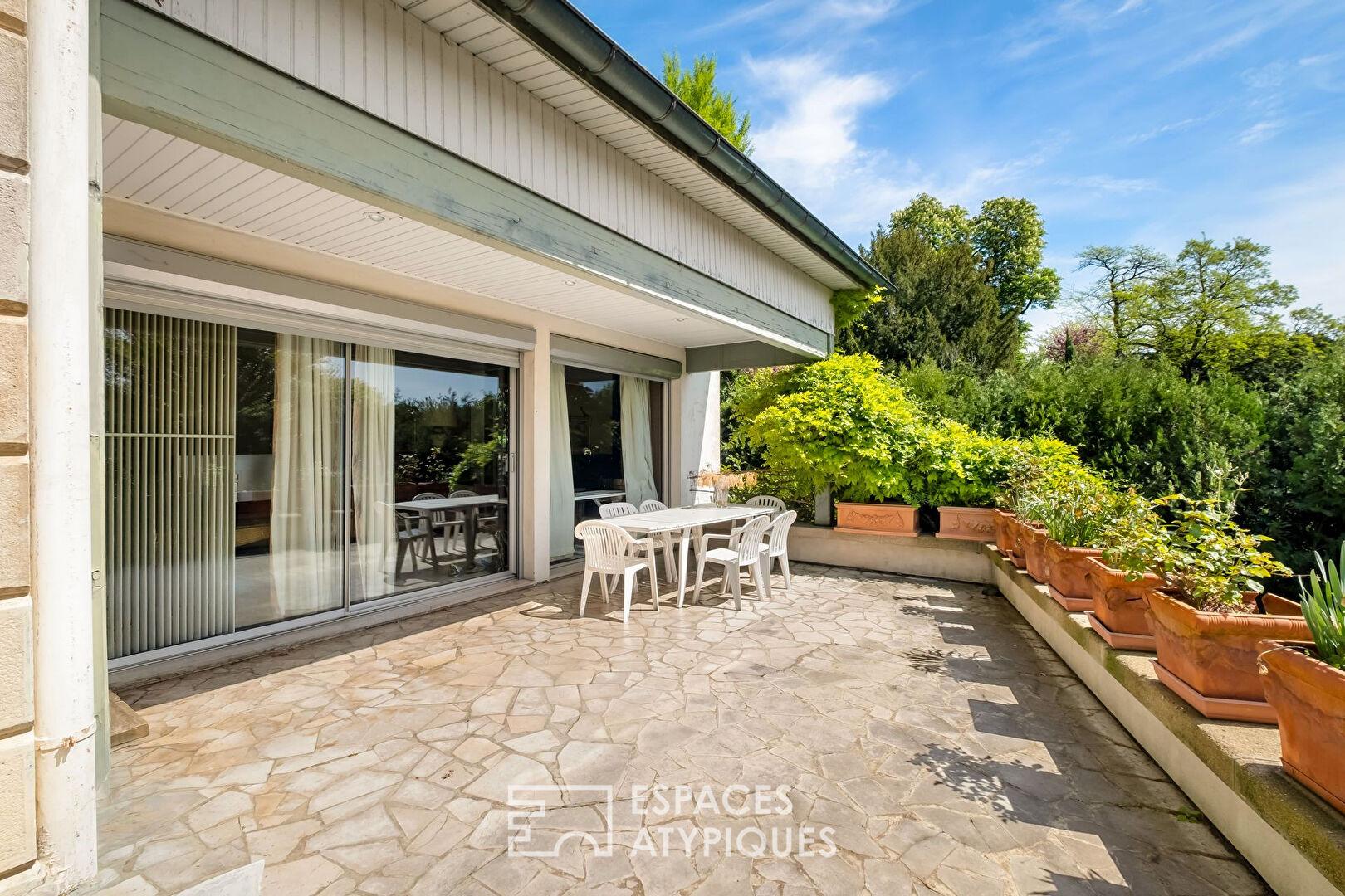 Cette propriété de caractère séduit par ses volumes généreux, sa terrasse et son vaste jardin, ainsi que par une ancienne orangerie au charme indéniable de 83m2 avec accès indépendant.