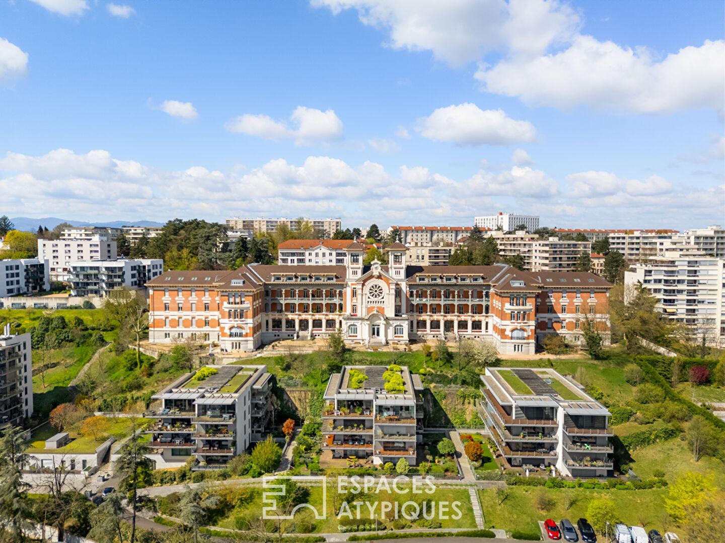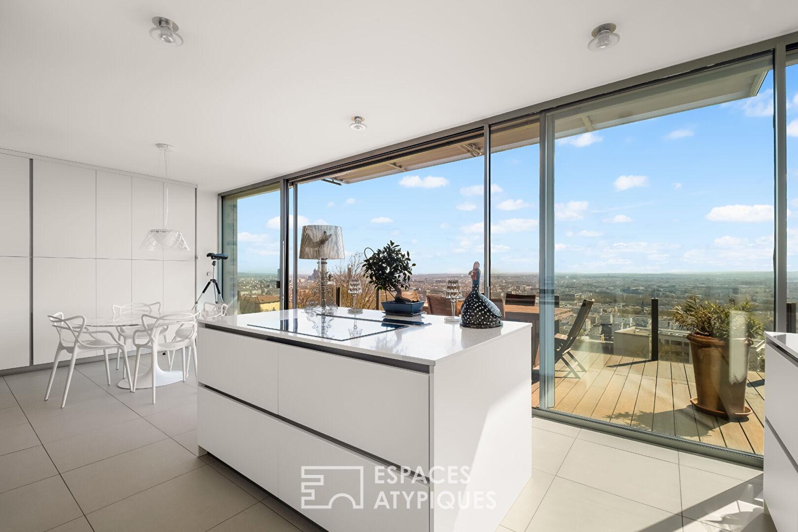 Toit-terrasse avec grandes terrasses et vue imprenable sur Lyon dans une résidence de standing
