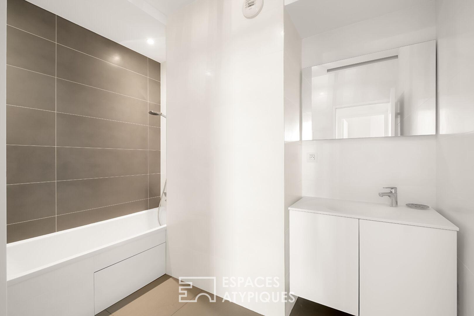 Ce bien se distingue par sa position en dernier étage, ses volumes, sa luminosité et ses espaces extérieurs généreux, en faisant un appartement atypique et singulier sur le marché immobilier lyonnais.