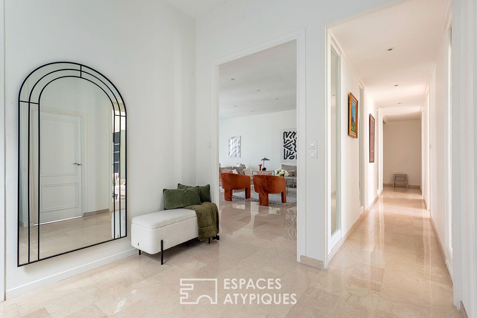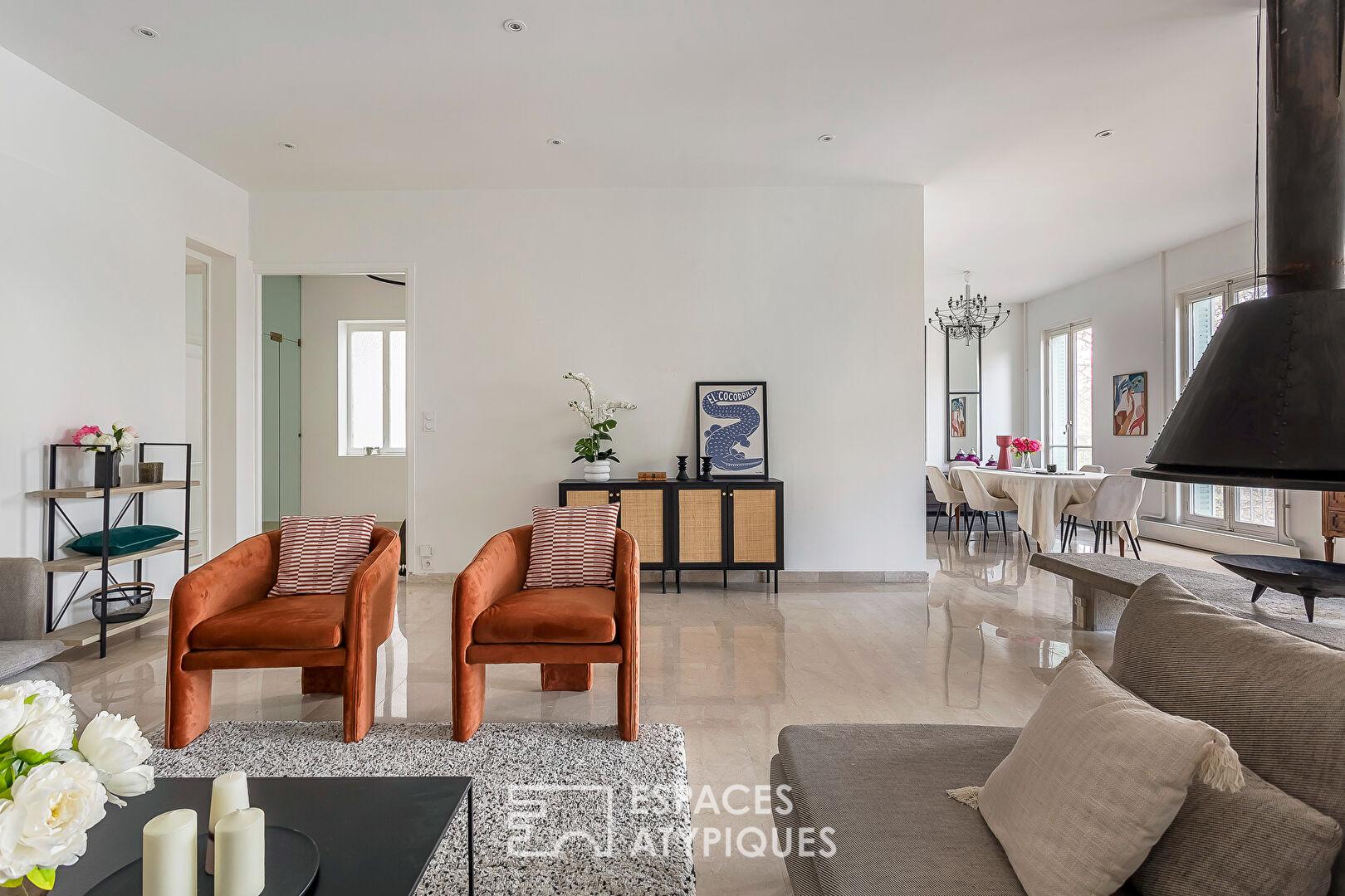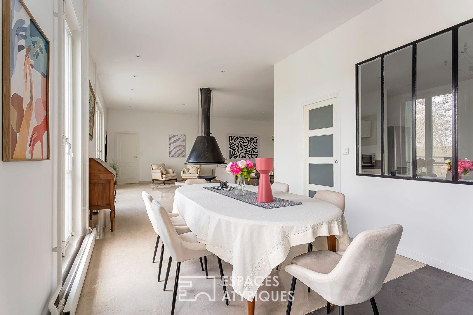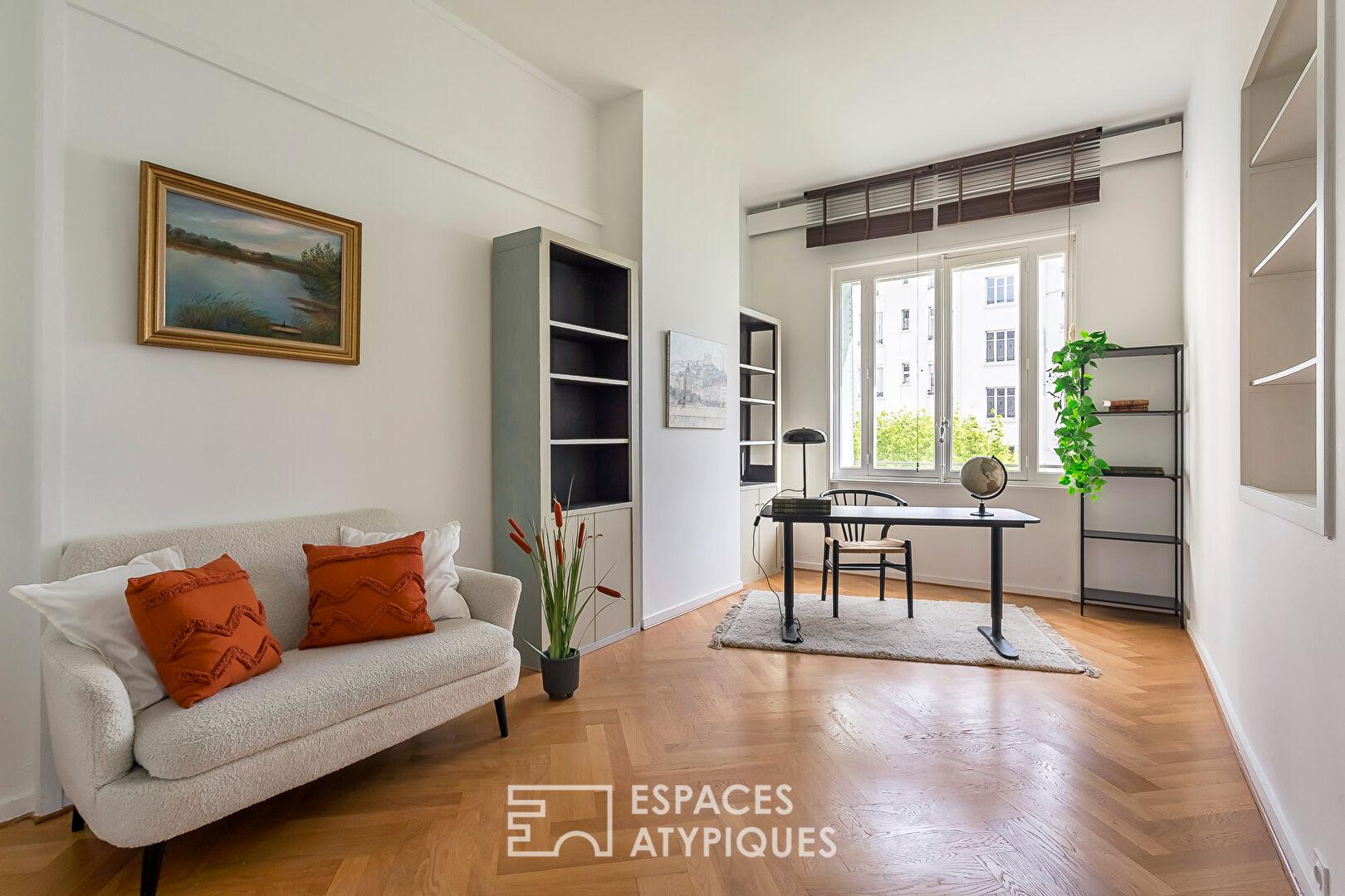 Au coeur du très recherché 6e arrondissement, à quelques pas du Parc de la Tête d’Or, cet appartement singulier prend place au sommet d’un hôtel particulier des années 1920, surélevé avec élégance pour accueillir un vaste espace de vie contemporain.