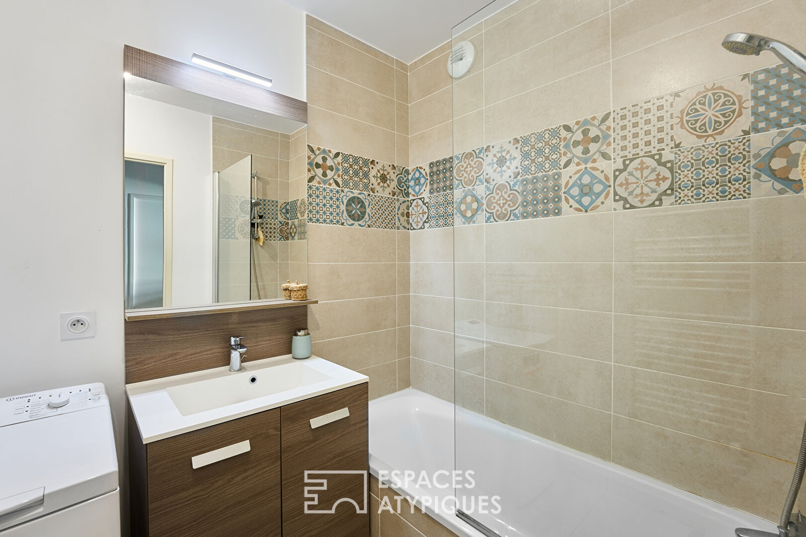 Son cachet, sa terrasse permettant des moments de convivialité et son emplacement proche de toutes les commerces, font de ce duplex un lieu idéal à vivre.
