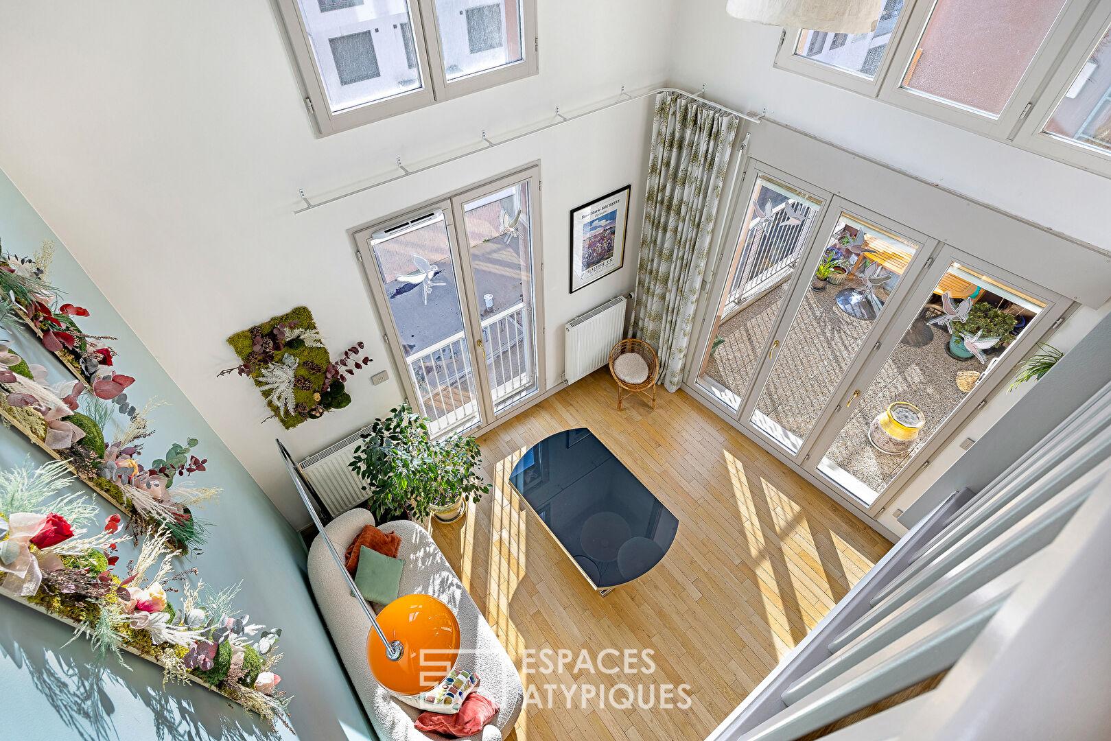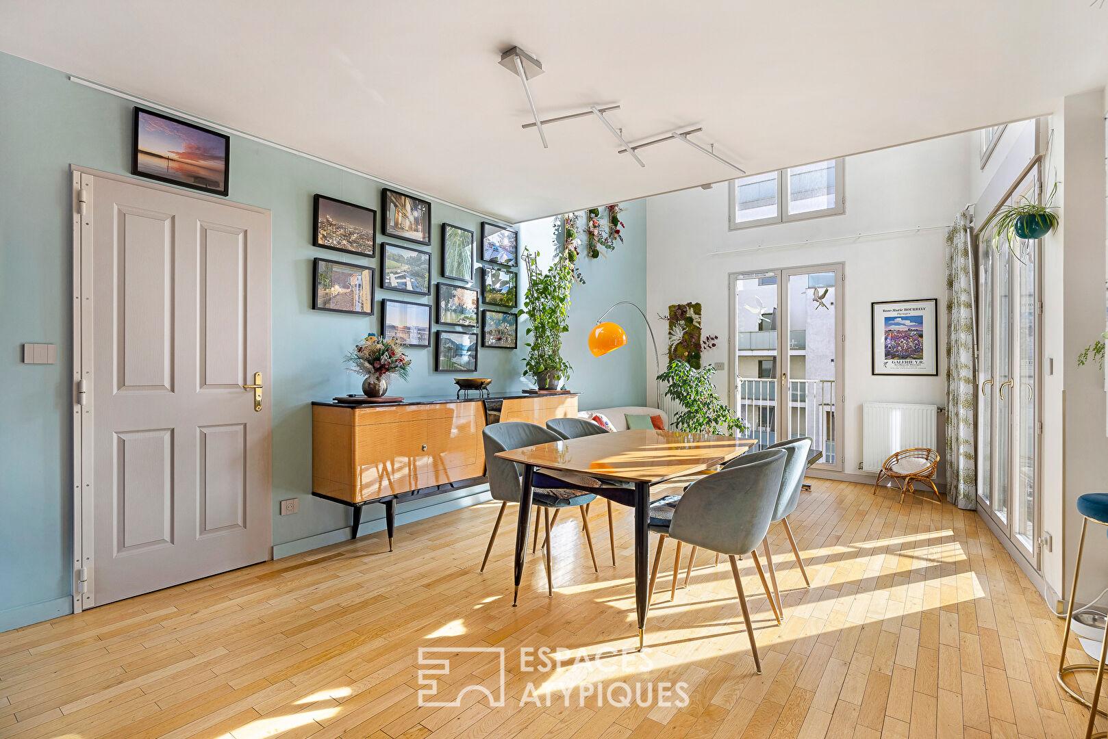 Situé aux 5e et 6e étages d’une copropriété bien entretenue, raccordée au chauffage urbain, ce duplex de 107 m² Carrez propose une configuration de type T4 aux prestations soignées. Une loggia agrémente l’extérieur, offrant un espace d’agrément en toute saison. L’ensemble bénéficie d’une belle luminosité, dans un environnement pratique, proche des transports et commodités.