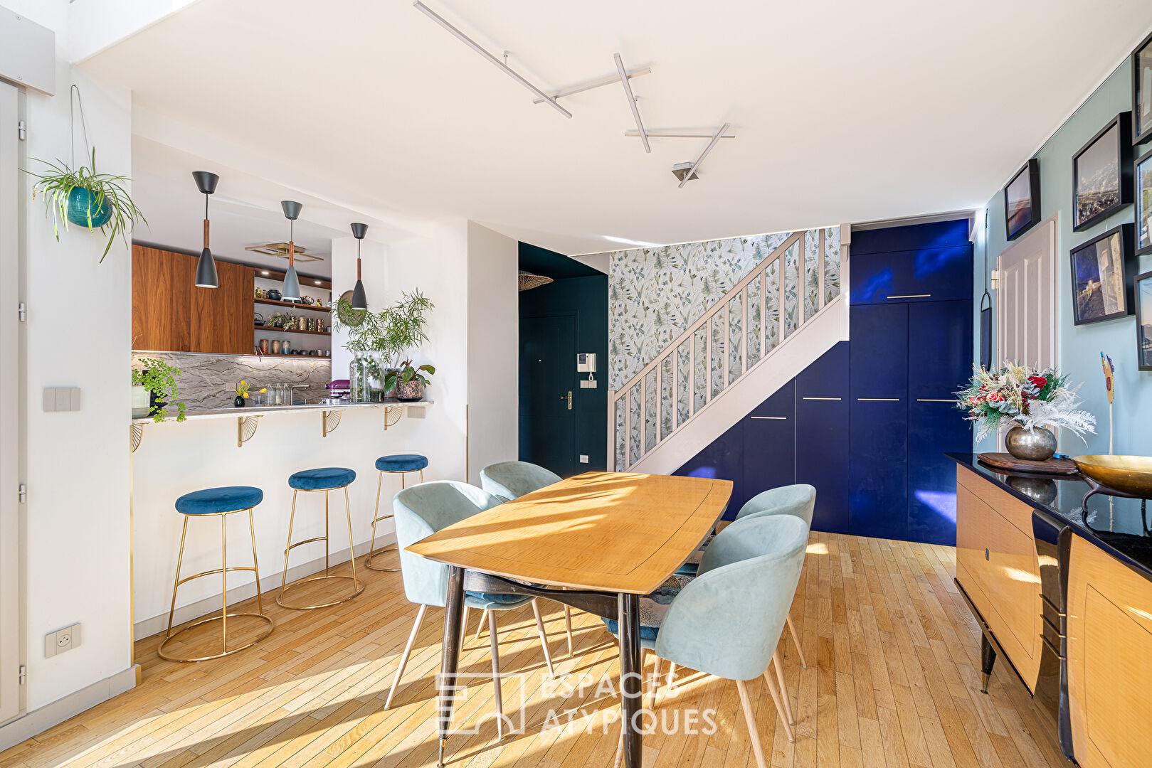 Ce duplex aux lignes épurées et à l’agencement fluide conjugue harmonieusement fonctionnalité et confort. Son atmosphère feutrée, ses volumes bien pensés et son extérieur discret en font un bien singulier, adapté à une vie de famille ou à une recherche de quiétude en coeur de ville.