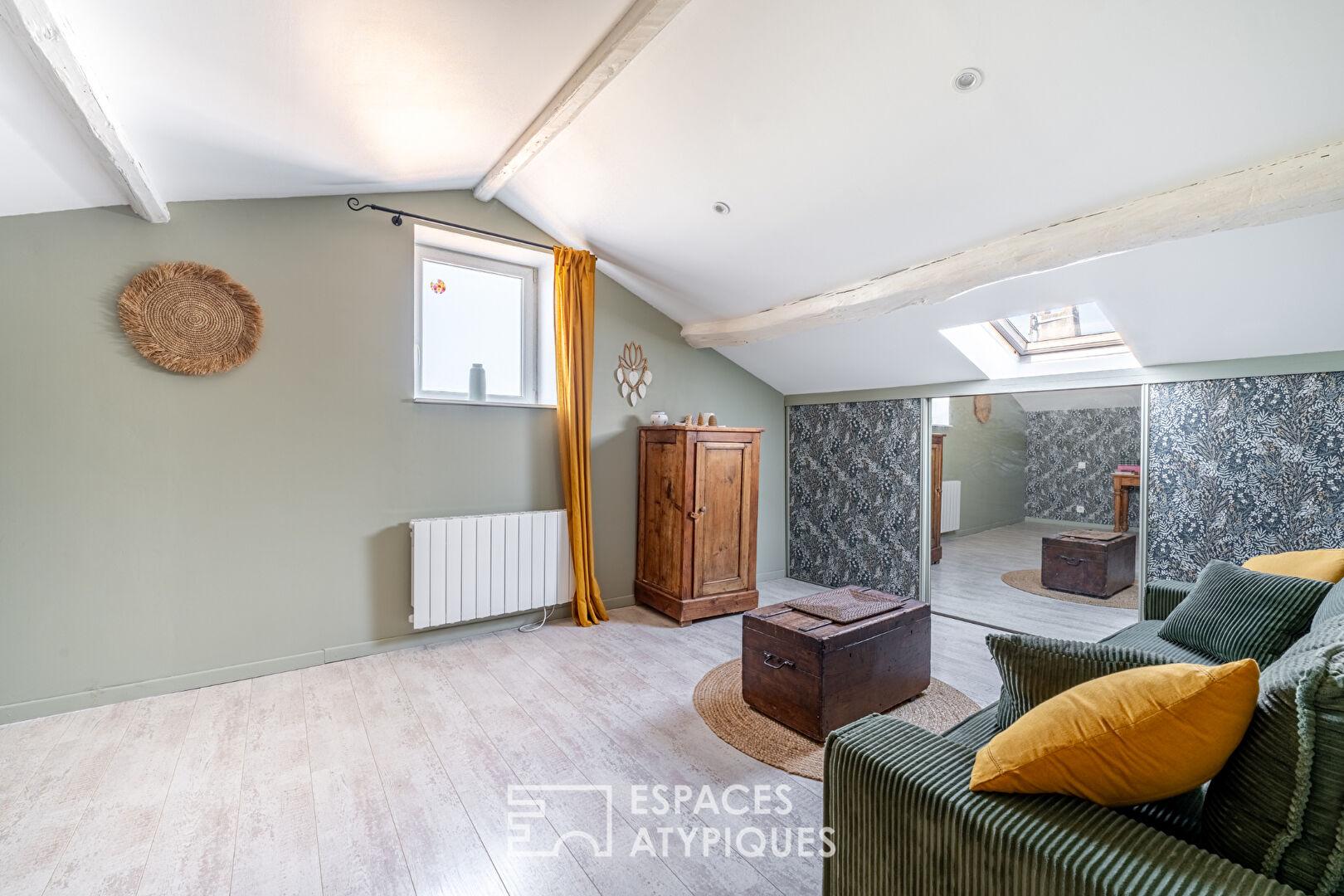 La rénovation récente a su préserver le charme de l’ancien, mettant en valeur des matériaux authentiques et conférant à l’ensemble une ambiance douce et accueillante.