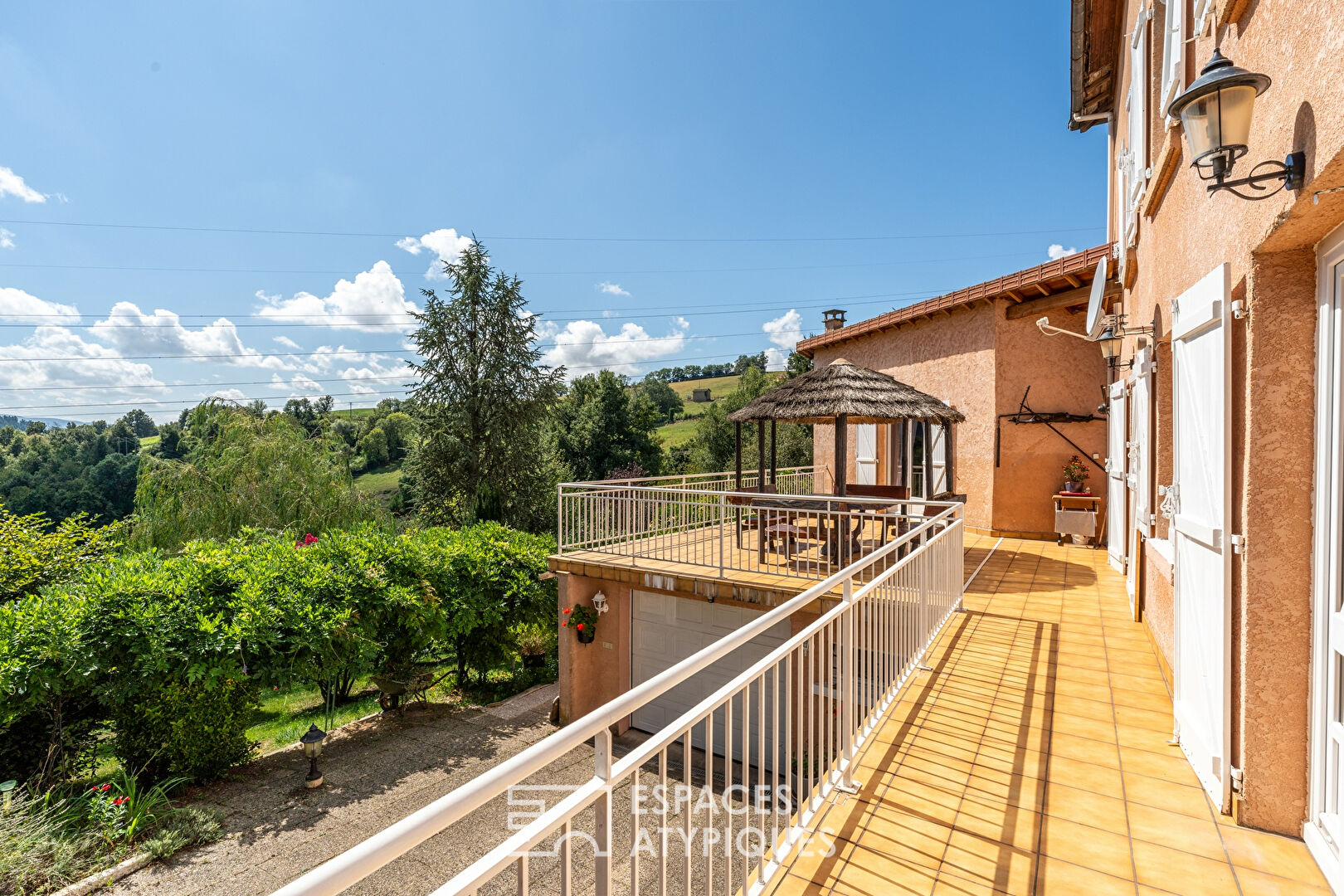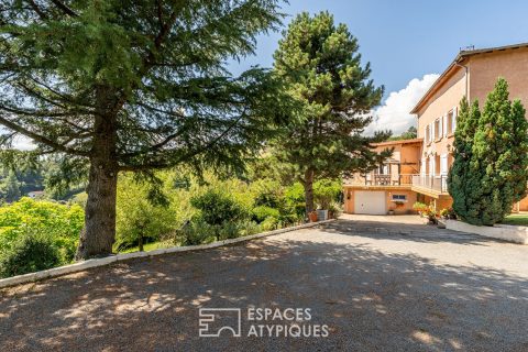 Une extension, réalisée en 2014, accueille un second séjour et une salle à manger. Dans le prolongement de cet espace, une terrasse avec vue panoramique se prête idéalement à des moments de partage et de convivialité.