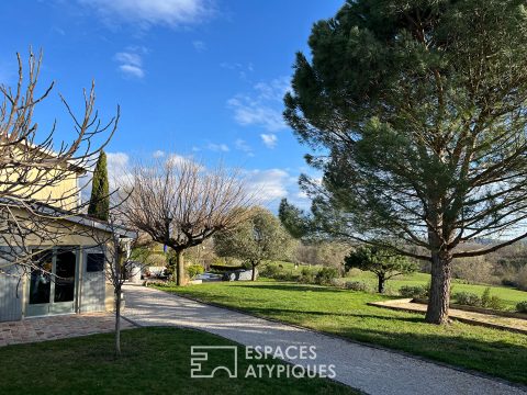 À l’extérieur, le terrain arboré déploie ses atouts : une piscine pour les beaux jours, un terrain de pétanque pour des instants partagés et un atelier indépendant de plus de 30m pour donner libre cours à ses envies.