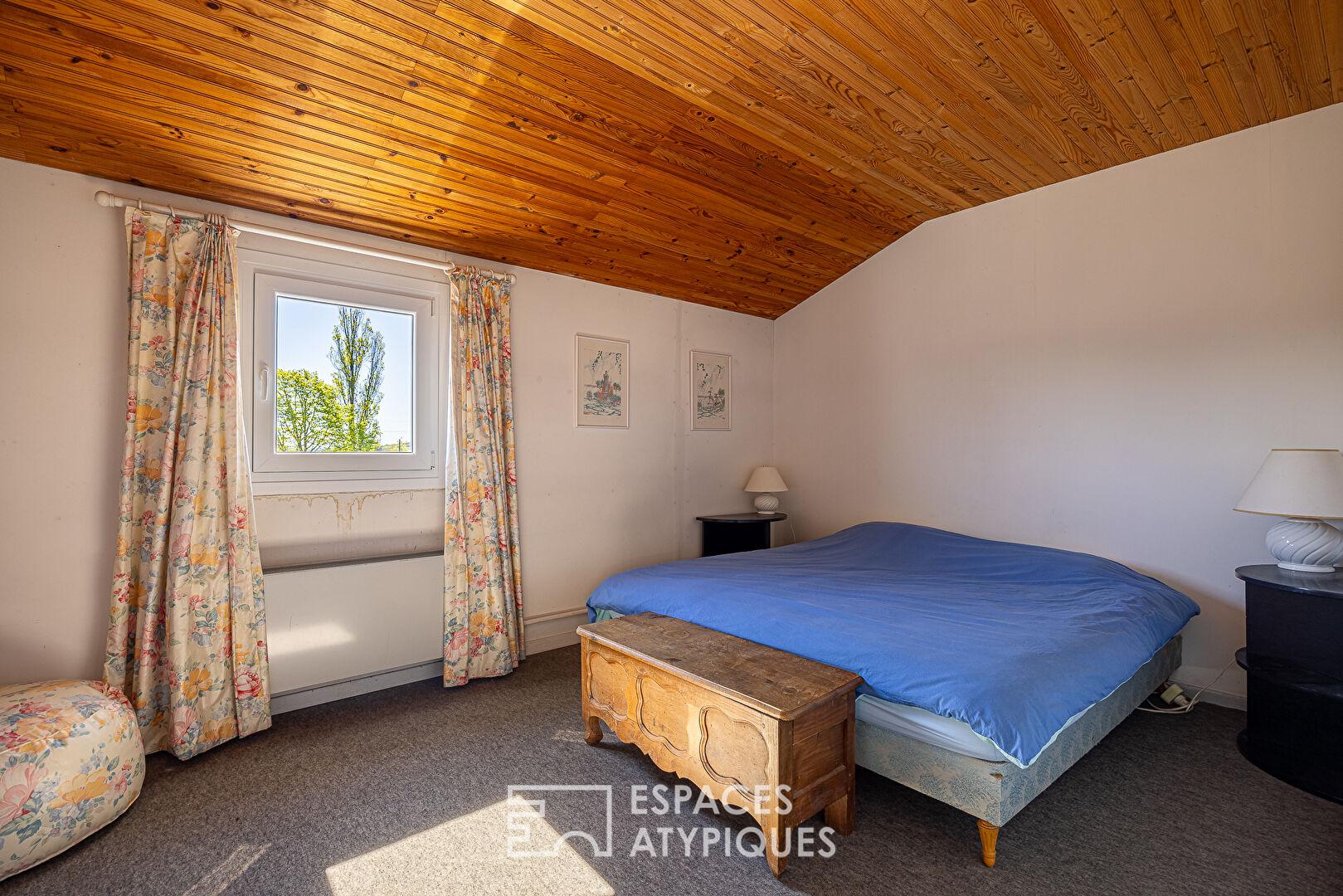 À l’étage, un dégagement dessert quatre chambres supplémentaires ainsi qu’une salle de bains et un WC, permettant une organisation idéale pour une grande famille ou la réception d’invités.