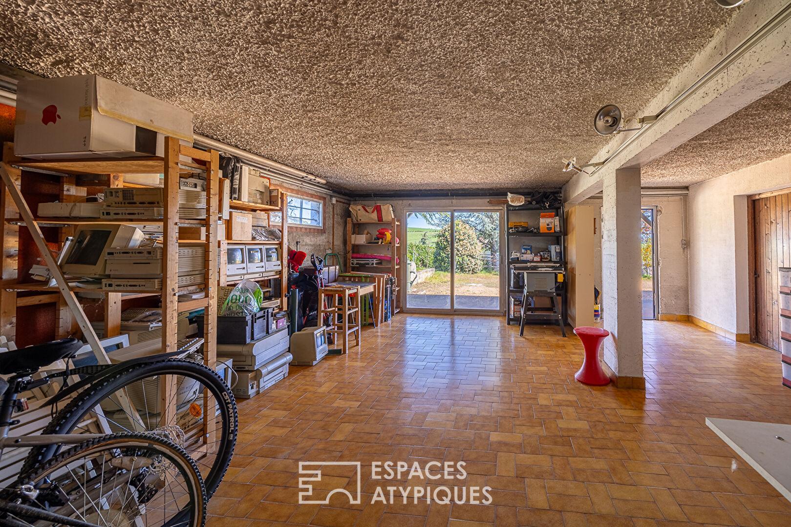 Le sous-sol de 150 m², aux multiples possibilités, comprend un garage double, une salle de jeux, une buanderie, une chaufferie et une cave, offrant également un potentiel pour une activité indépendante. Un grenier complète l’ensemble.