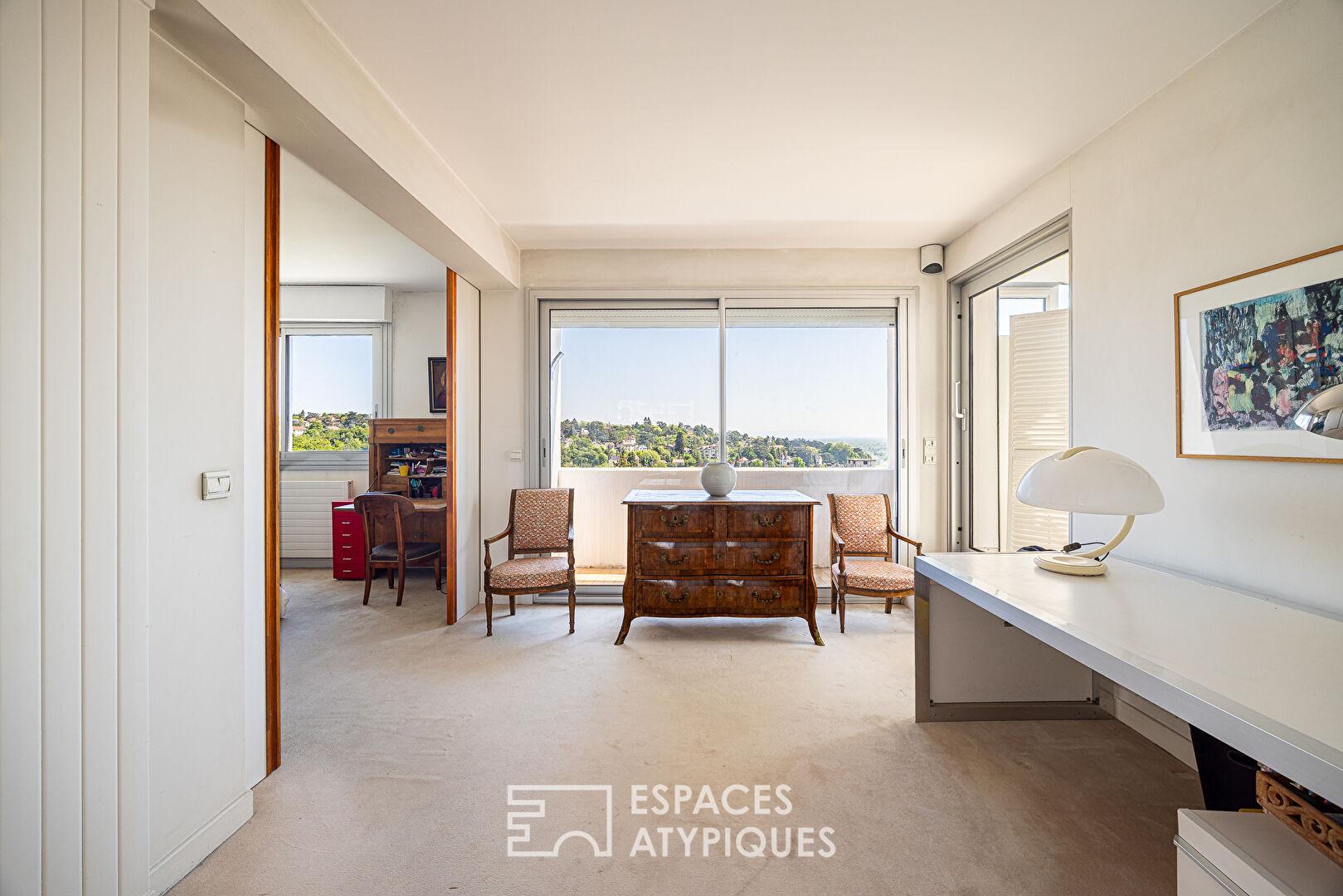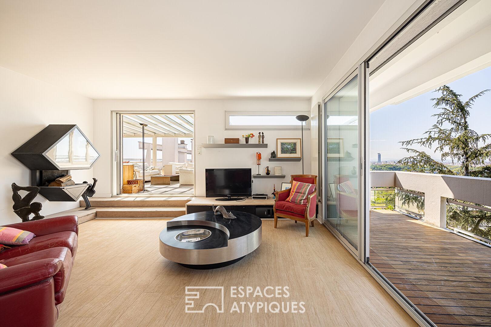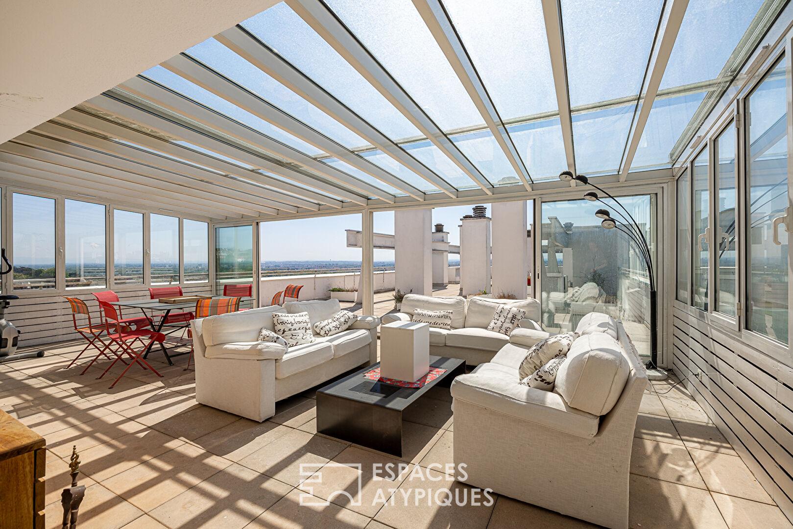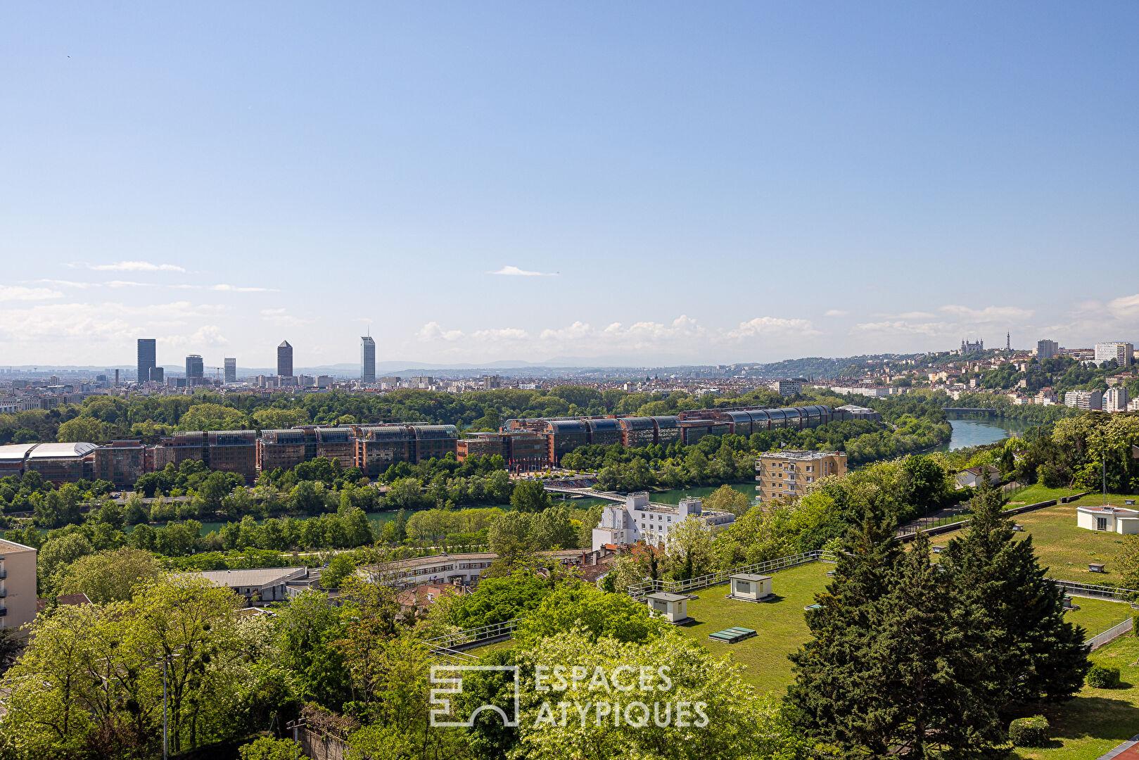 Situé à Caluire, secteur Boutary, au dernier étage d’une résidence de standing avec parc, piscine et tennis, cet appartement de 130m² est complétée par une véranda de 42m² et une terrasse exceptionnelle de 200m² avec une vue imprenable .