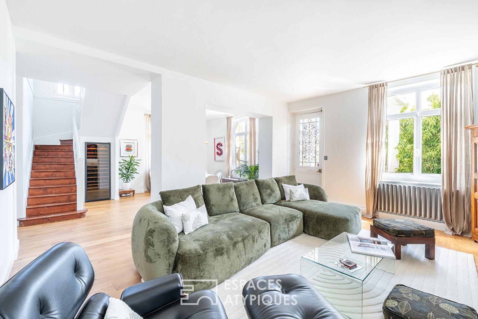 Située sur la commune de Francheville, cette élégante maison des années 1920 s’érige au coeur d’un parc arboré de près de 4.524m² avec piscine.