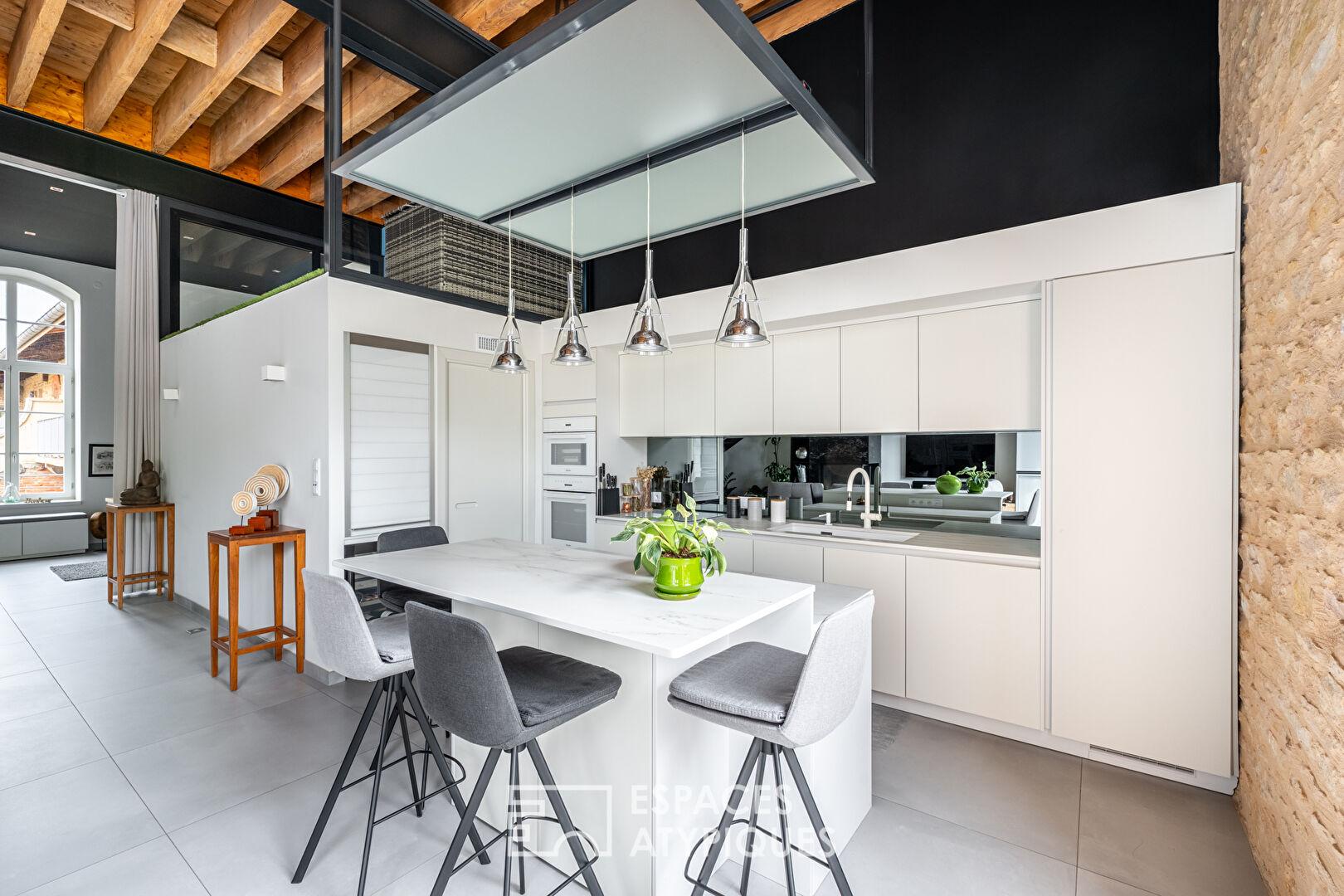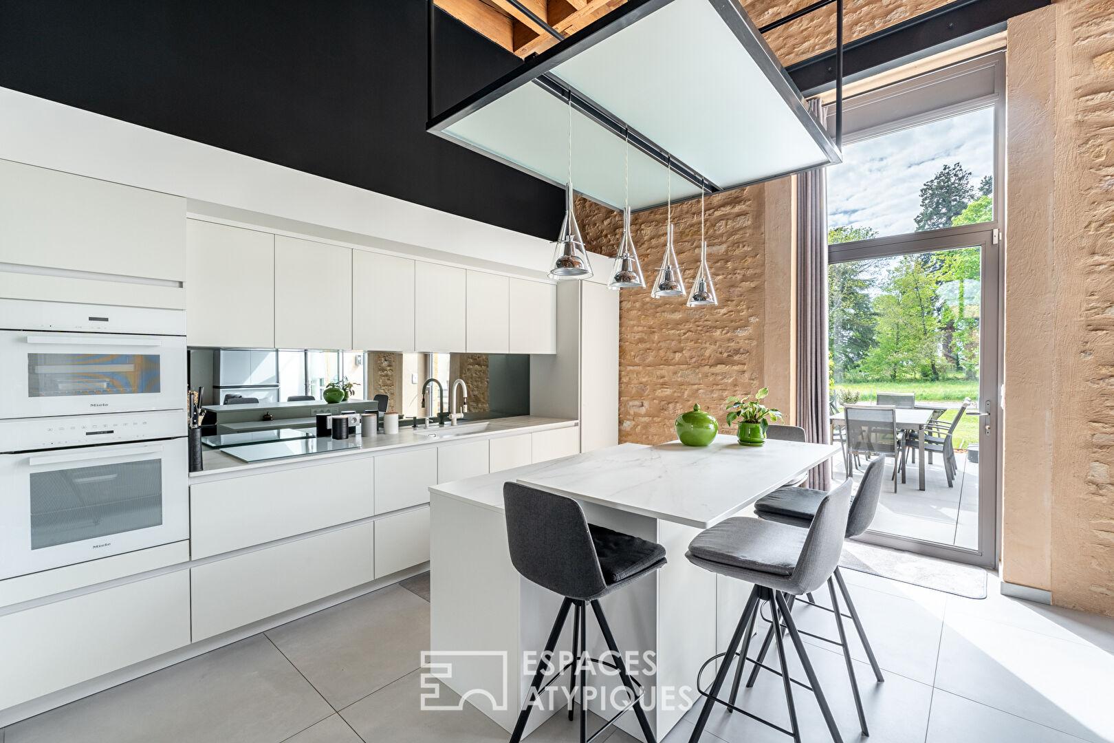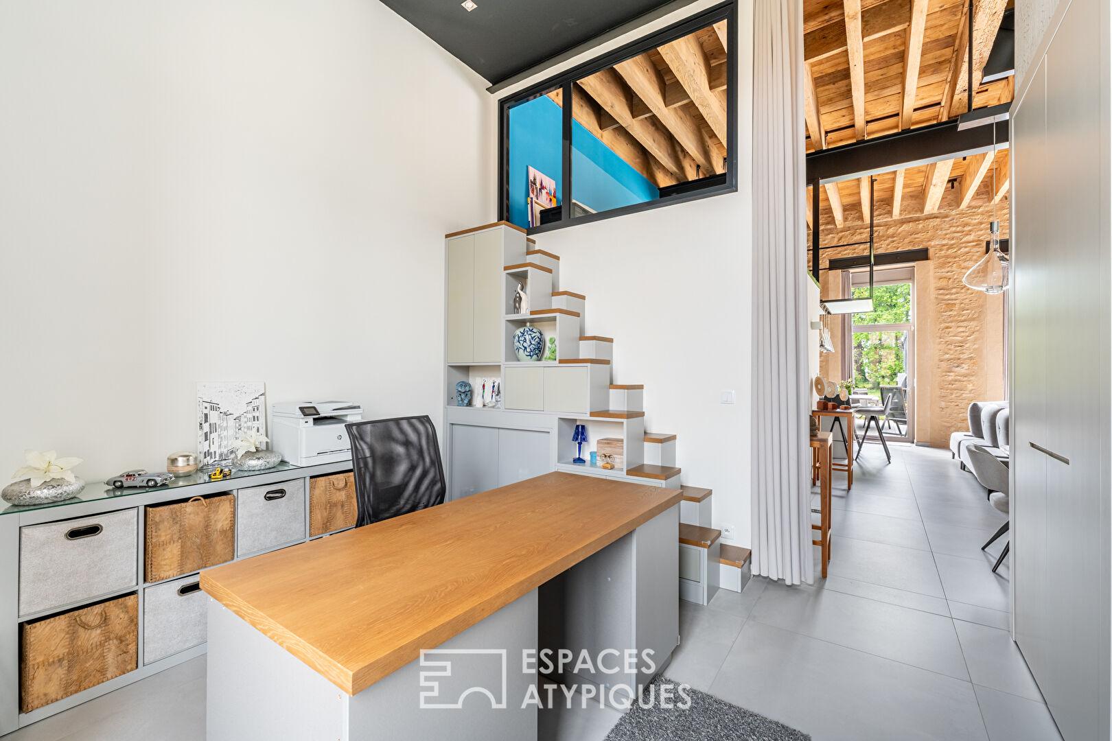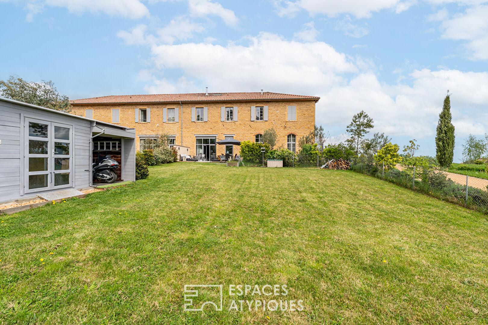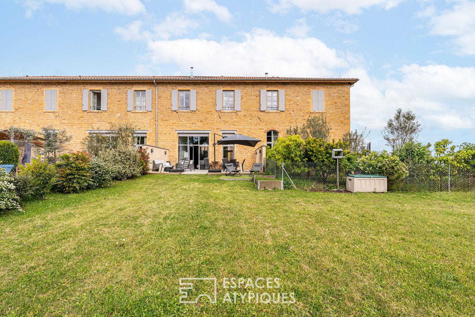 Situé au coeur d’un environnement privilégié, au milieu des vignes sur la commune de Porte des Pierres Dorées, ce cuvage entièrement rénové a été transformé en un superbe maison de 166m2 habitables alliant charme et modernité.