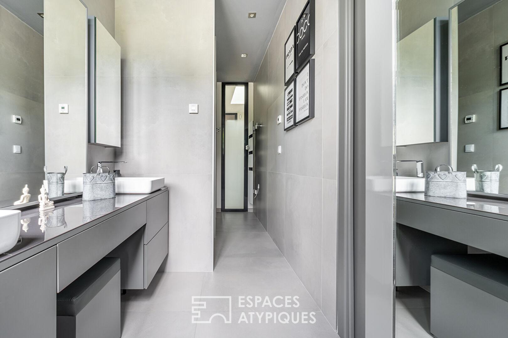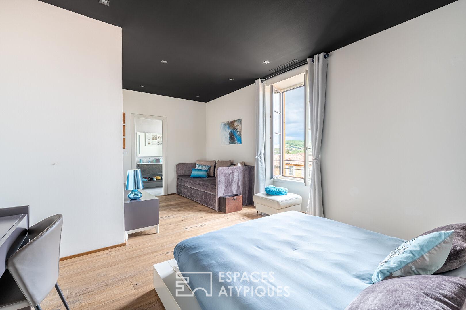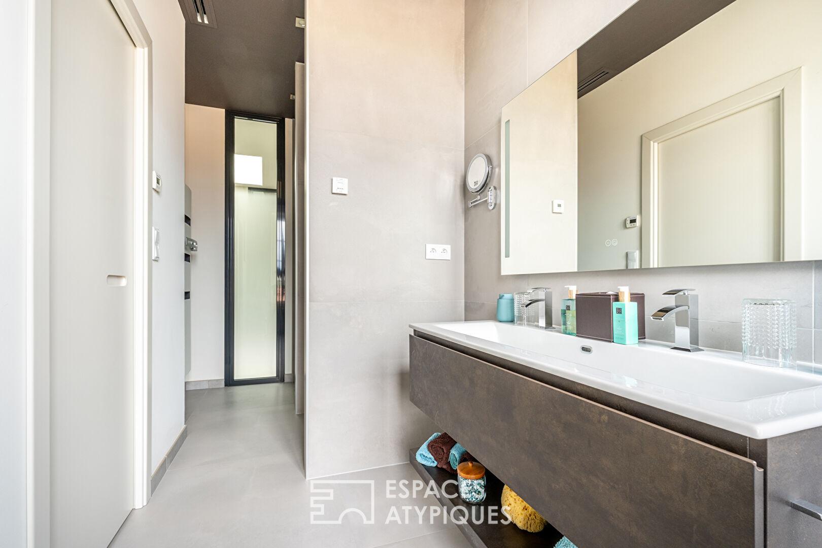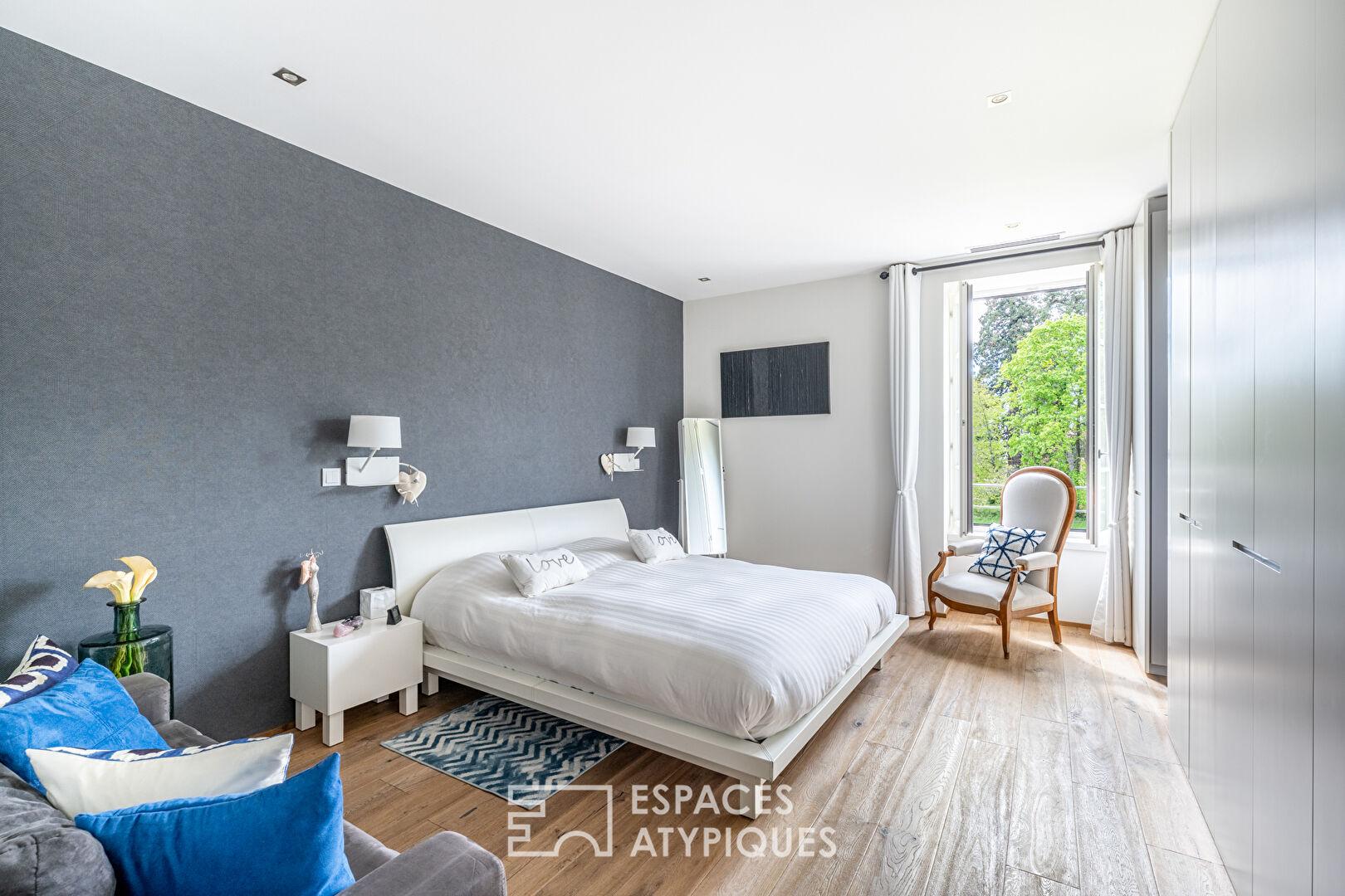 Grâce à son ascenseur privé, l’étage accueille deux chambres confortables avec chacune sa salle d’eau, parfaitement adaptées à une vie de famille ou à un projet de résidence secondaire.